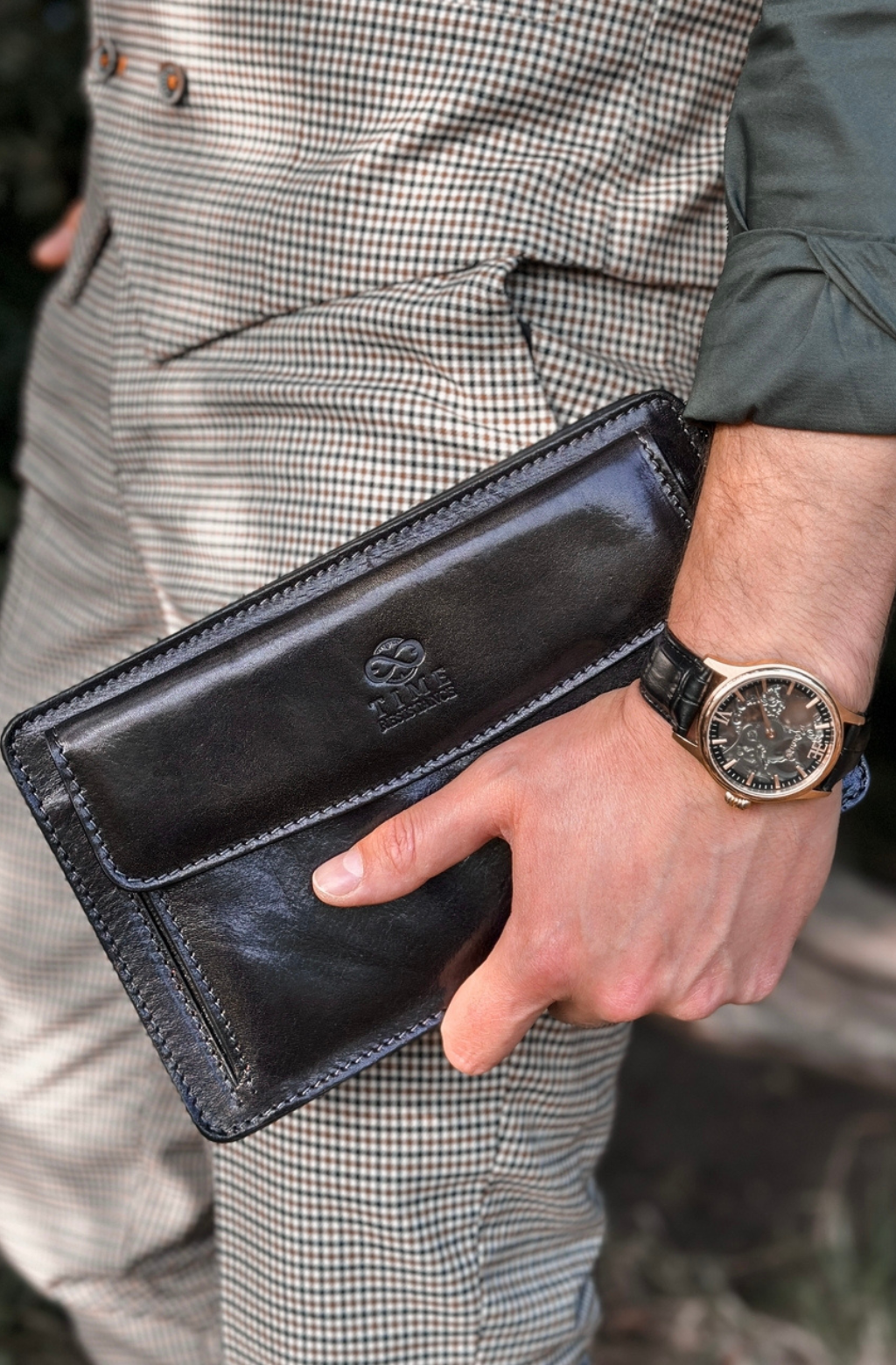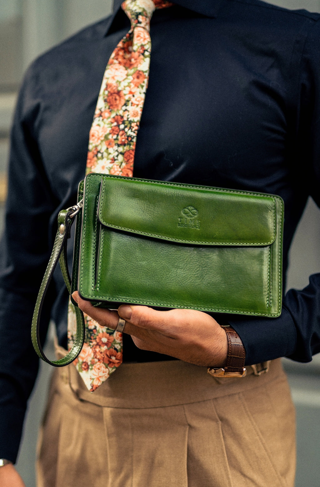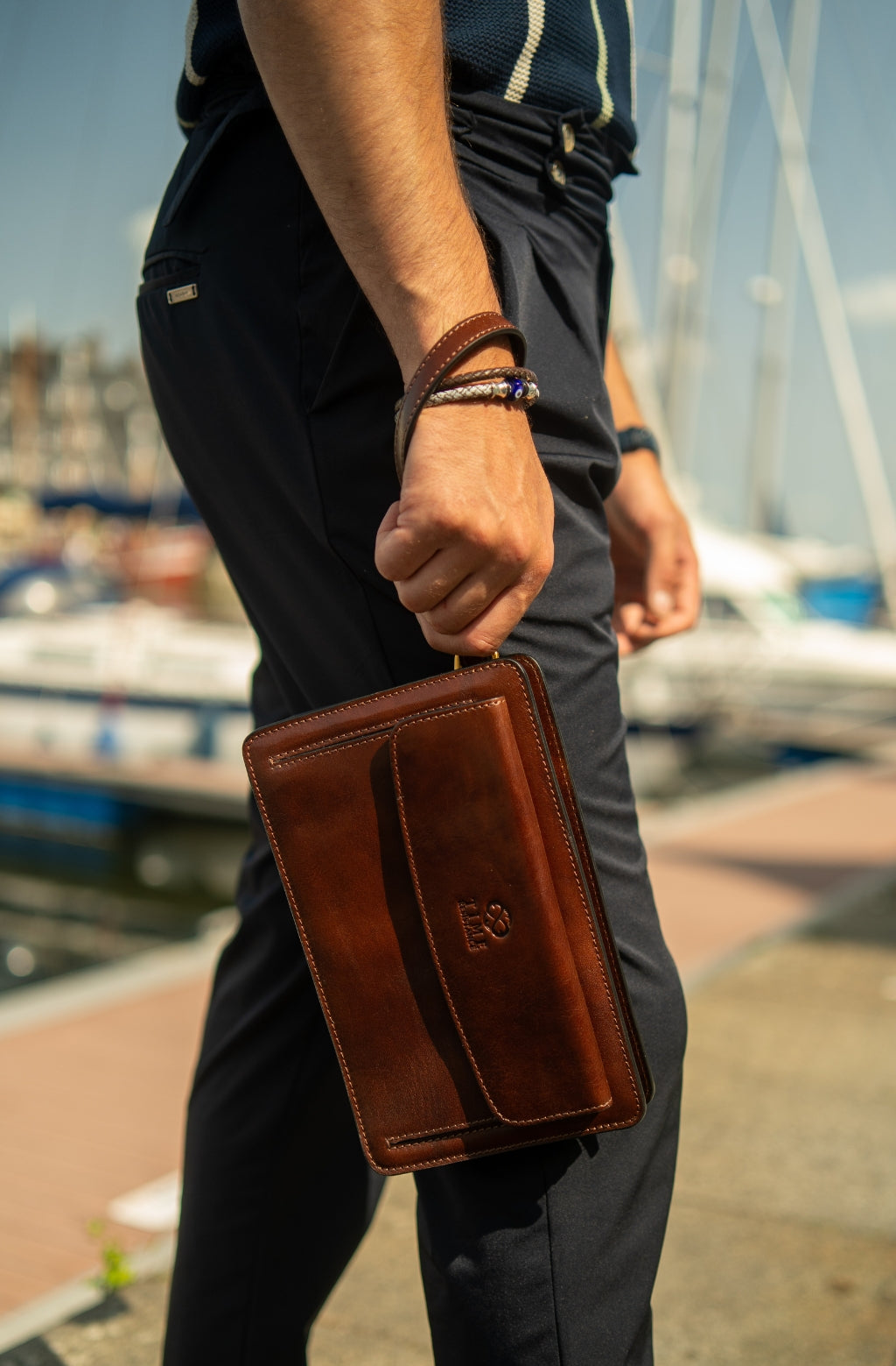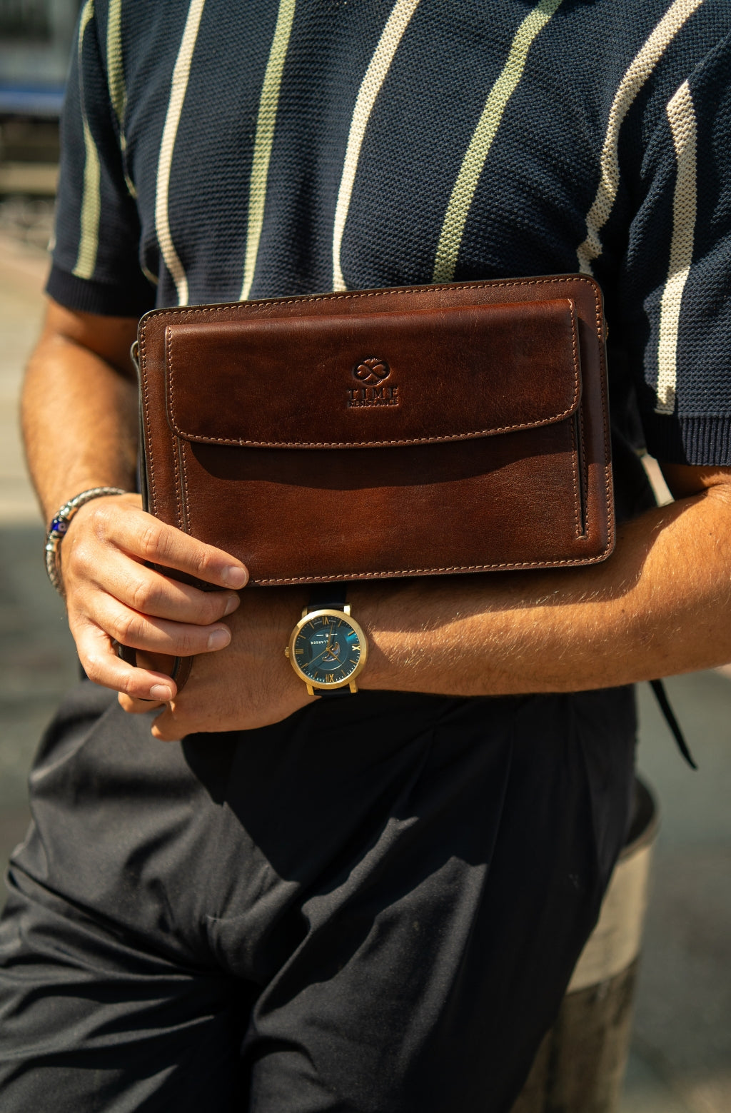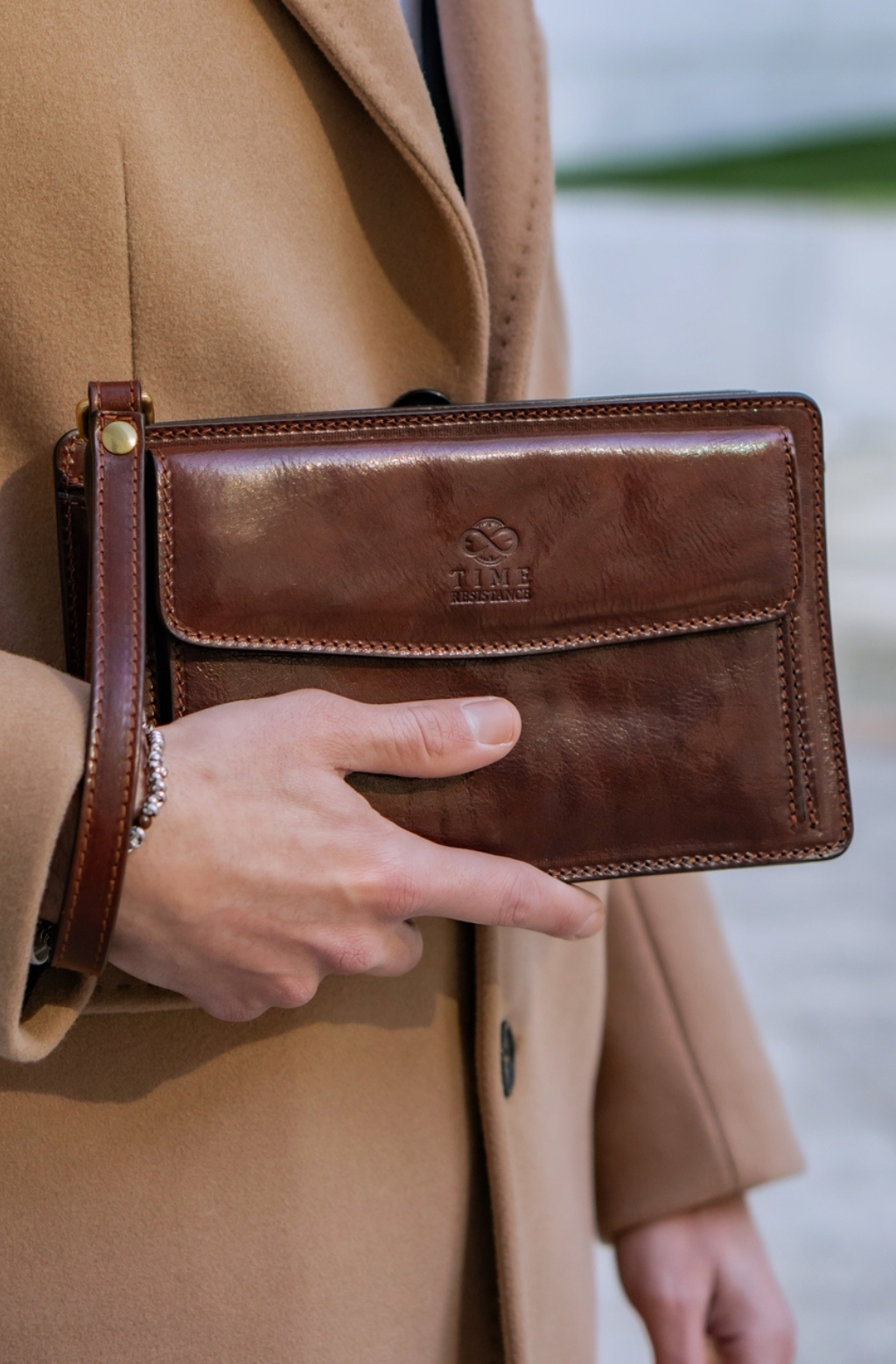 Time Resistance werkt met Italiaans Vachetta-volnerfleer: plantaardig gelooid en met de hand geverfd. Het ontwikkelt een rijke, elegante patina.