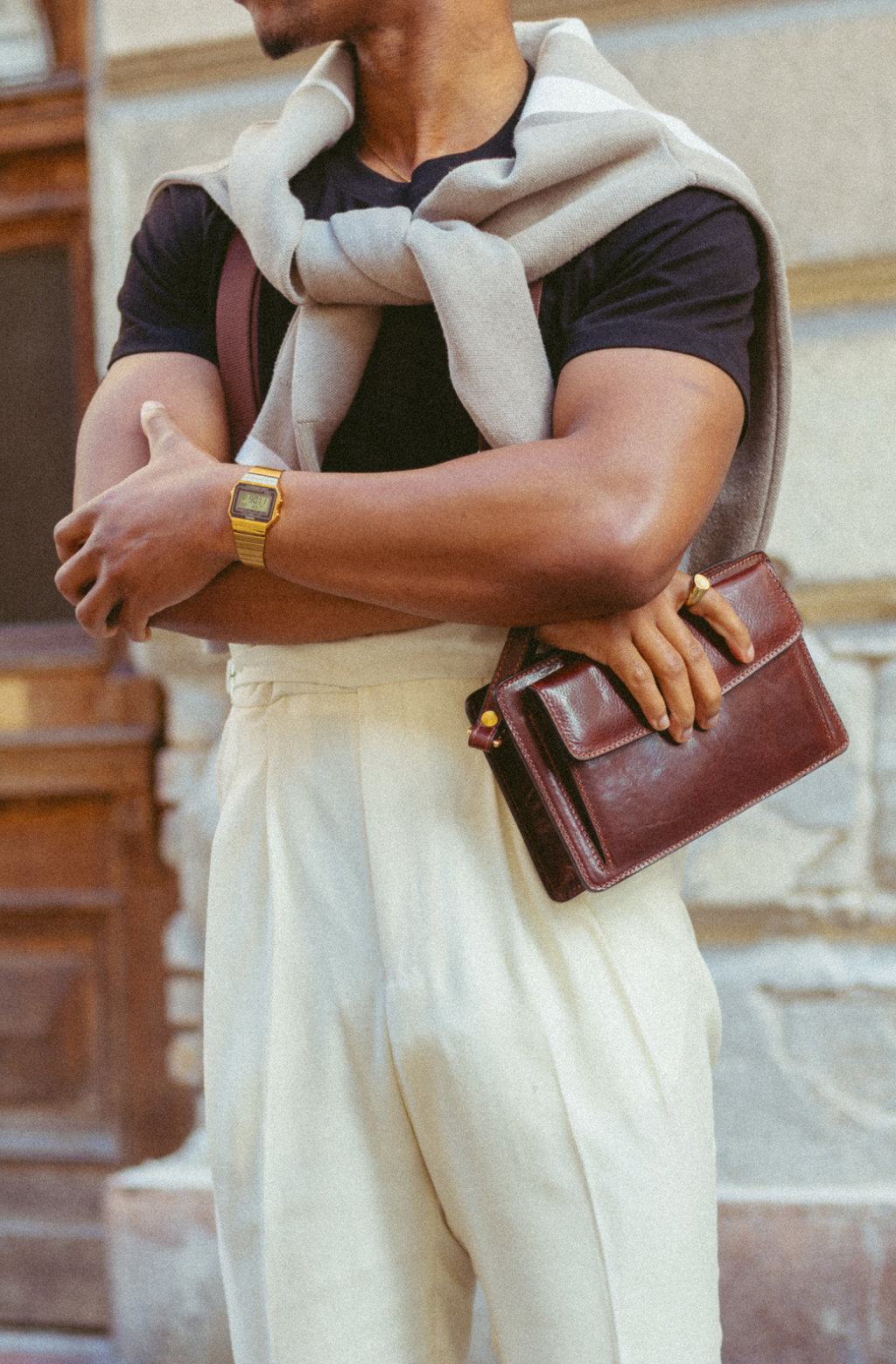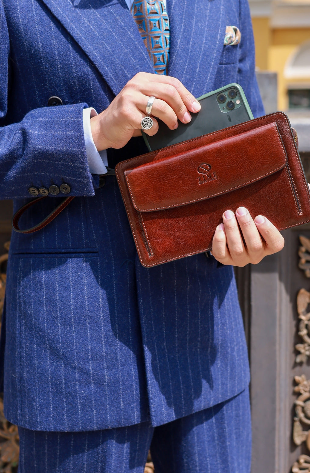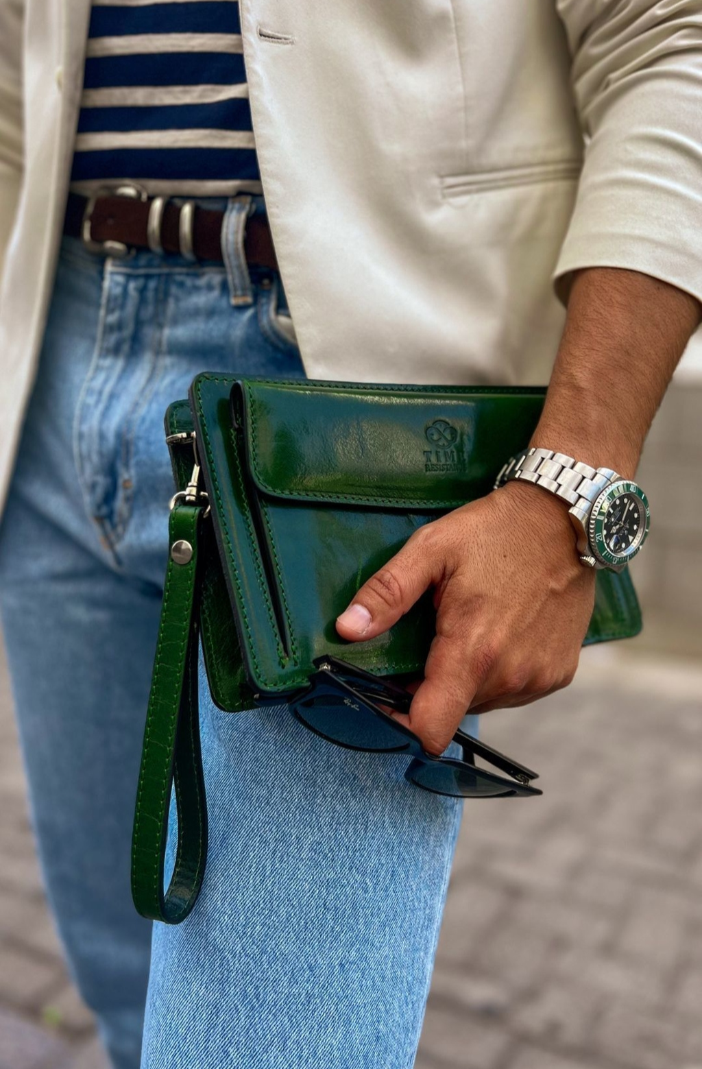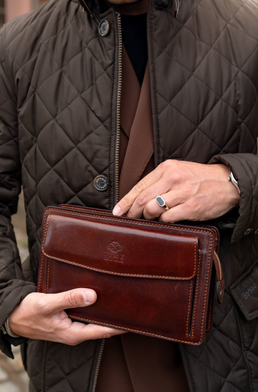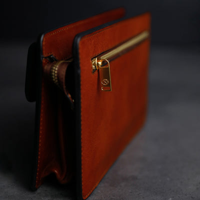 Time Resistance werkt met Italiaans Vachetta-volnerfleer: plantaardig gelooid en met de hand geverfd. Het ontwikkelt een rijke, elegante patina.