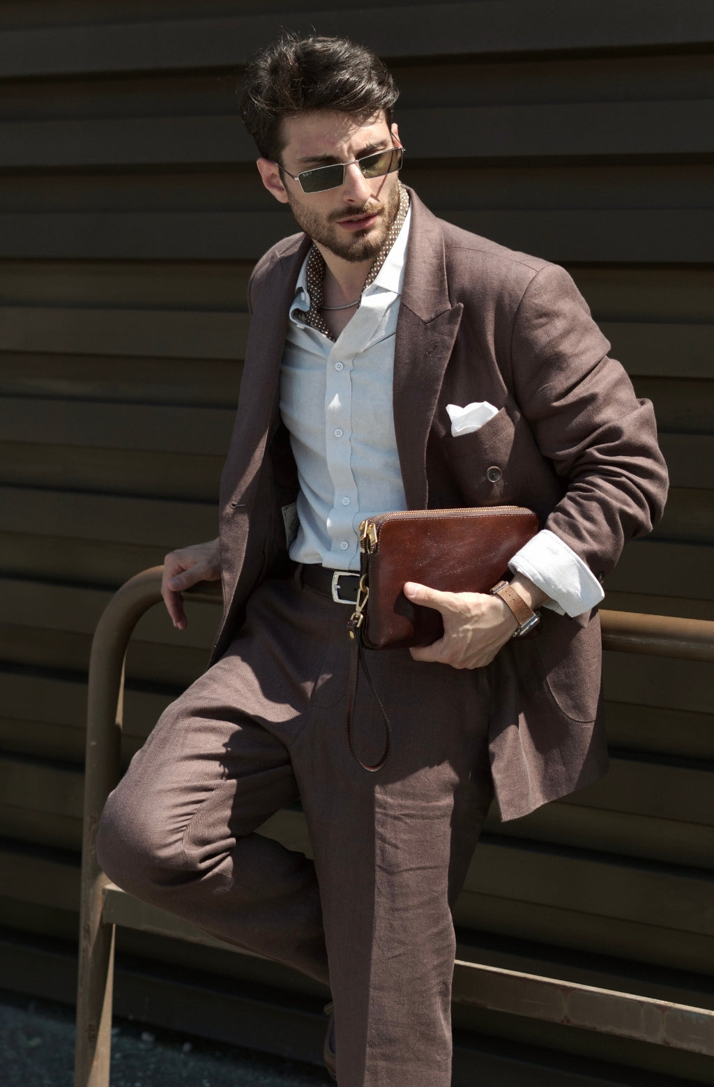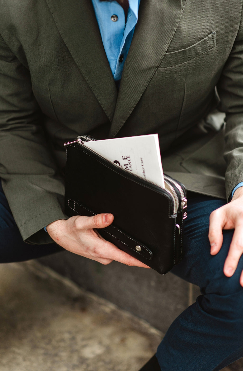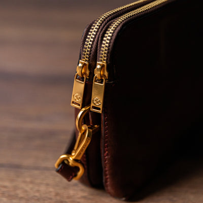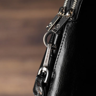 Een clutch van volnerfleer voor de moderne man die niet graag een schoudertas draagt, maar zich wel realiseert dat de omvang van zijn portemonnee uit de hand loopt. Deze clutch portemonnee biedt een verfijnder alternatief voor een uitpuilende portemonnee of jaszakken. Hij biedt plaats aan al uw dagelijkse benodigdheden en ziet er zakelijk uit met een vleugje elegant vakmanschap.