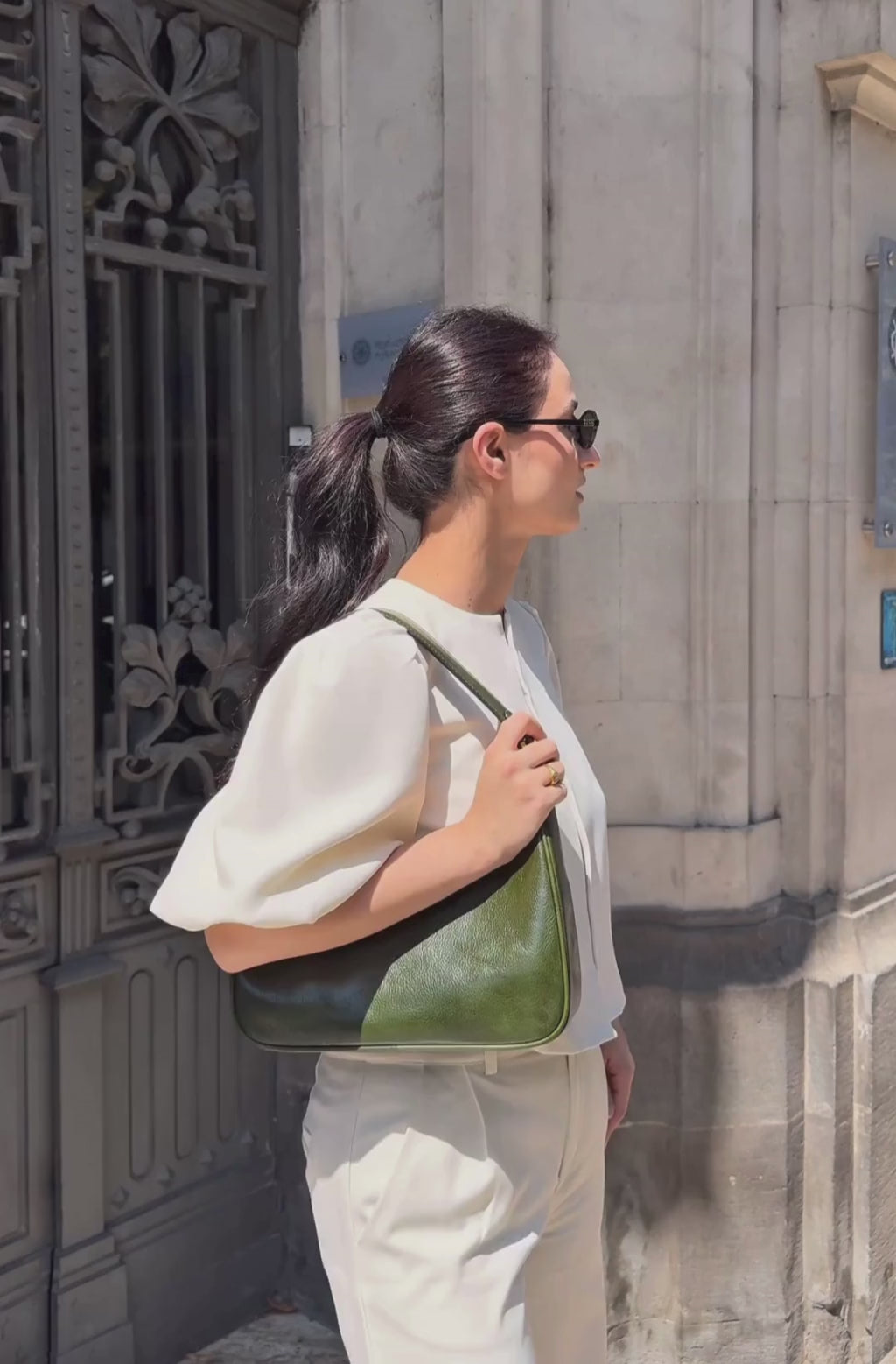 Maak kennis met de leren handtas "Bluest Eye", een symbool van ingetogen elegantie en tijdloze allure. De langwerpige vorm en strakke lijnen spreken boekdelen als het gaat om verfijning, terwijl het hengsel, perfect voor uw schouder, een vleugje praktische luxe toevoegt. De subtiele metalen details, die het hengsel subtiel aan de tas bevestigen, geven de tas een sprankelend en weelderig tintje en tillen het ontwerp naar nieuwe hoogten van verfijning. Binnenin ontdekt u een georganiseerde wereld met een ritsvak en twee steekzakken voor het gemakkelijk opbergen van uw dagelijkse benodigdheden. Met elke keer dat u de "Bluest Eye" draagt, wordt het meer dan alleen een accessoire—het belichaamt een teken van vertrouwen en gratie en verrijkt uw reis met tijdloze schoonheid.