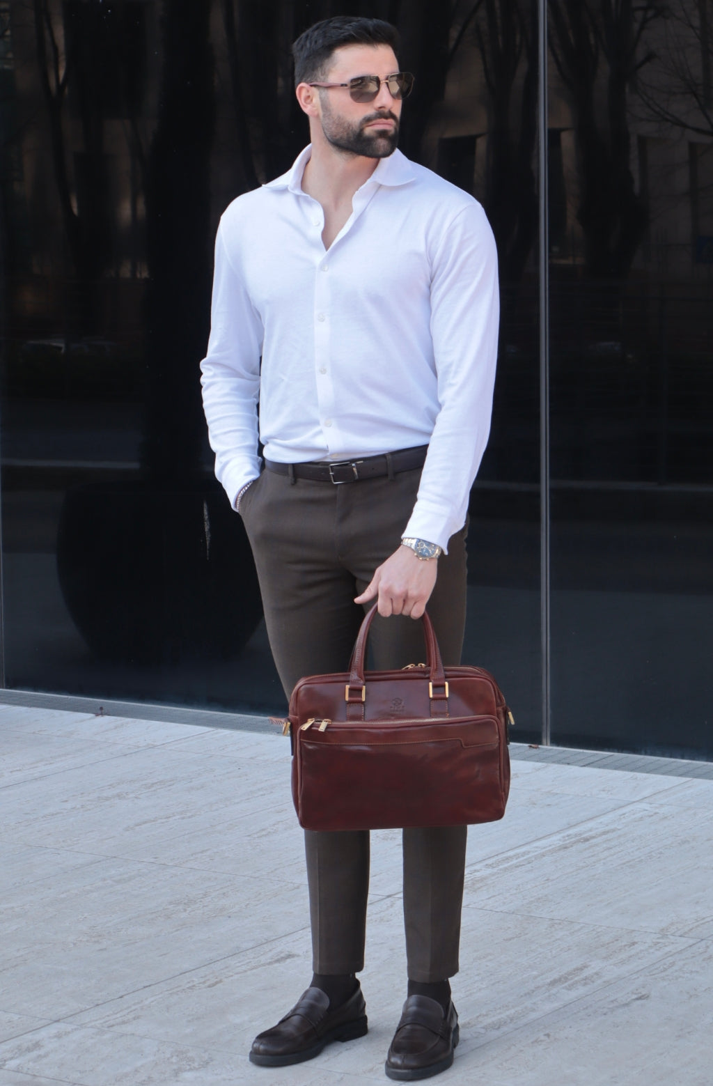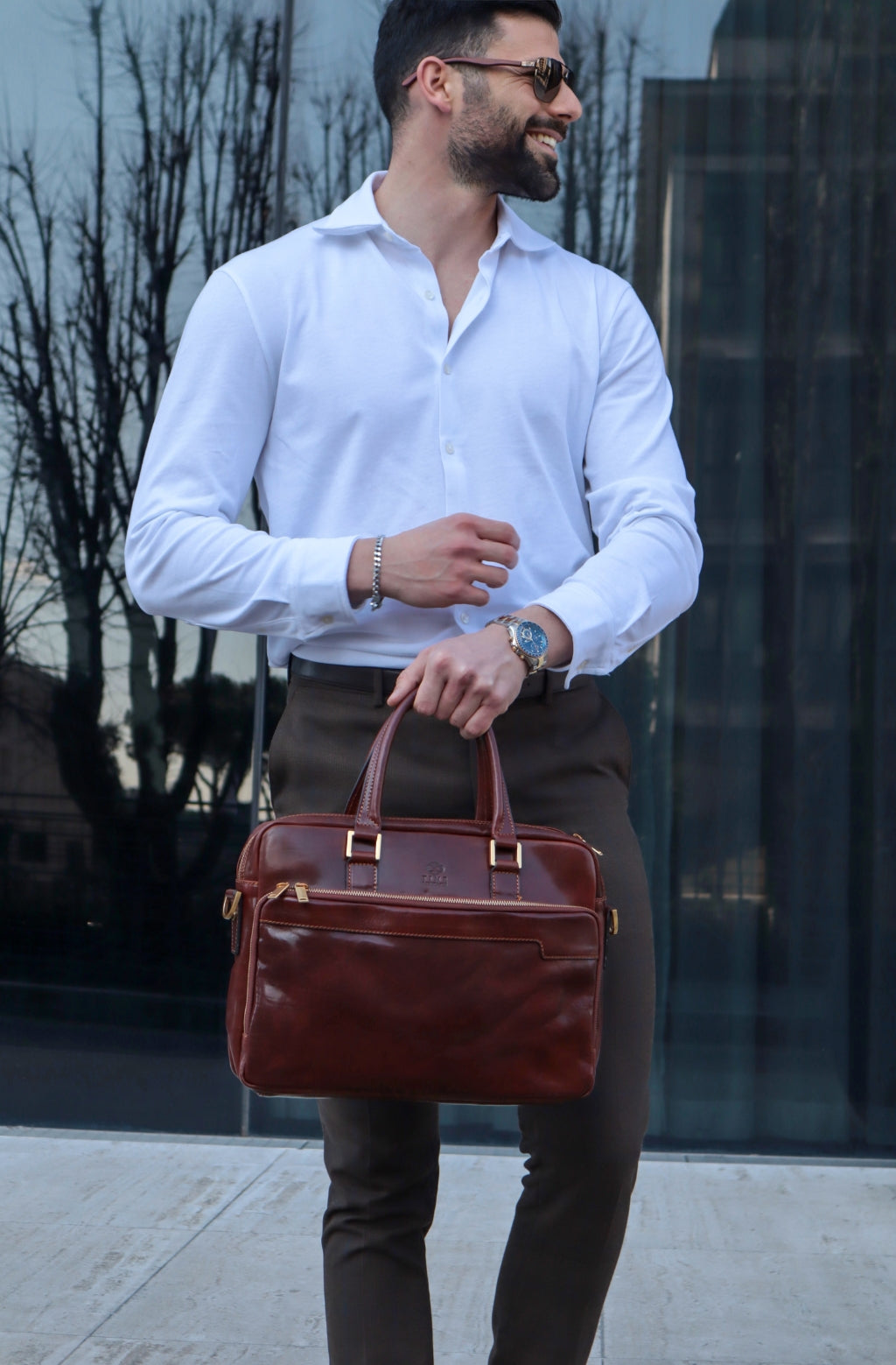 Orlando – onderweg naar uw werk of studie is deze leren laptoptas een geweldige metgezel. Het solide uiterlijk sluit perfect aan bij de behoeften van zowel mannen als vrouwen. Laat u niet misleiden, want ook al is hij klein, er past toch genoeg in.