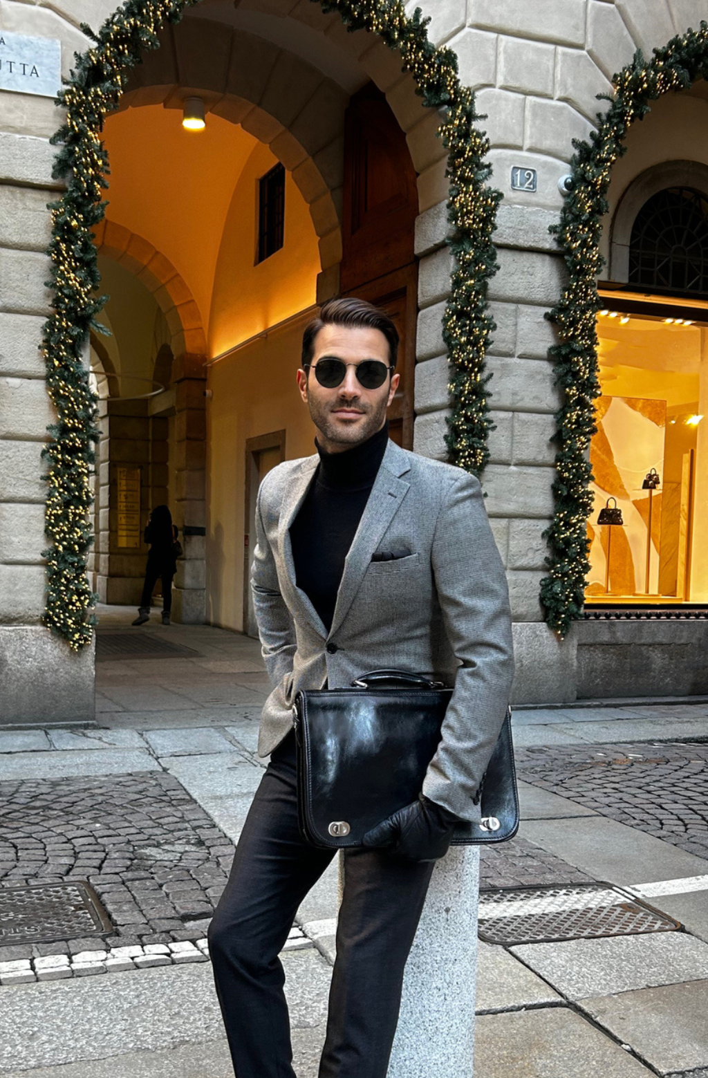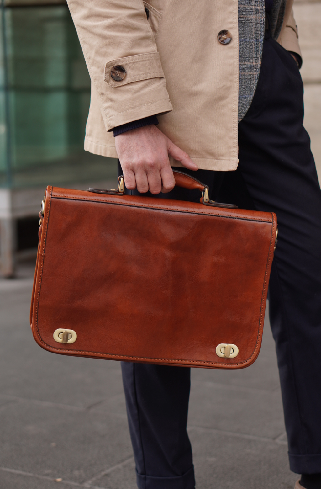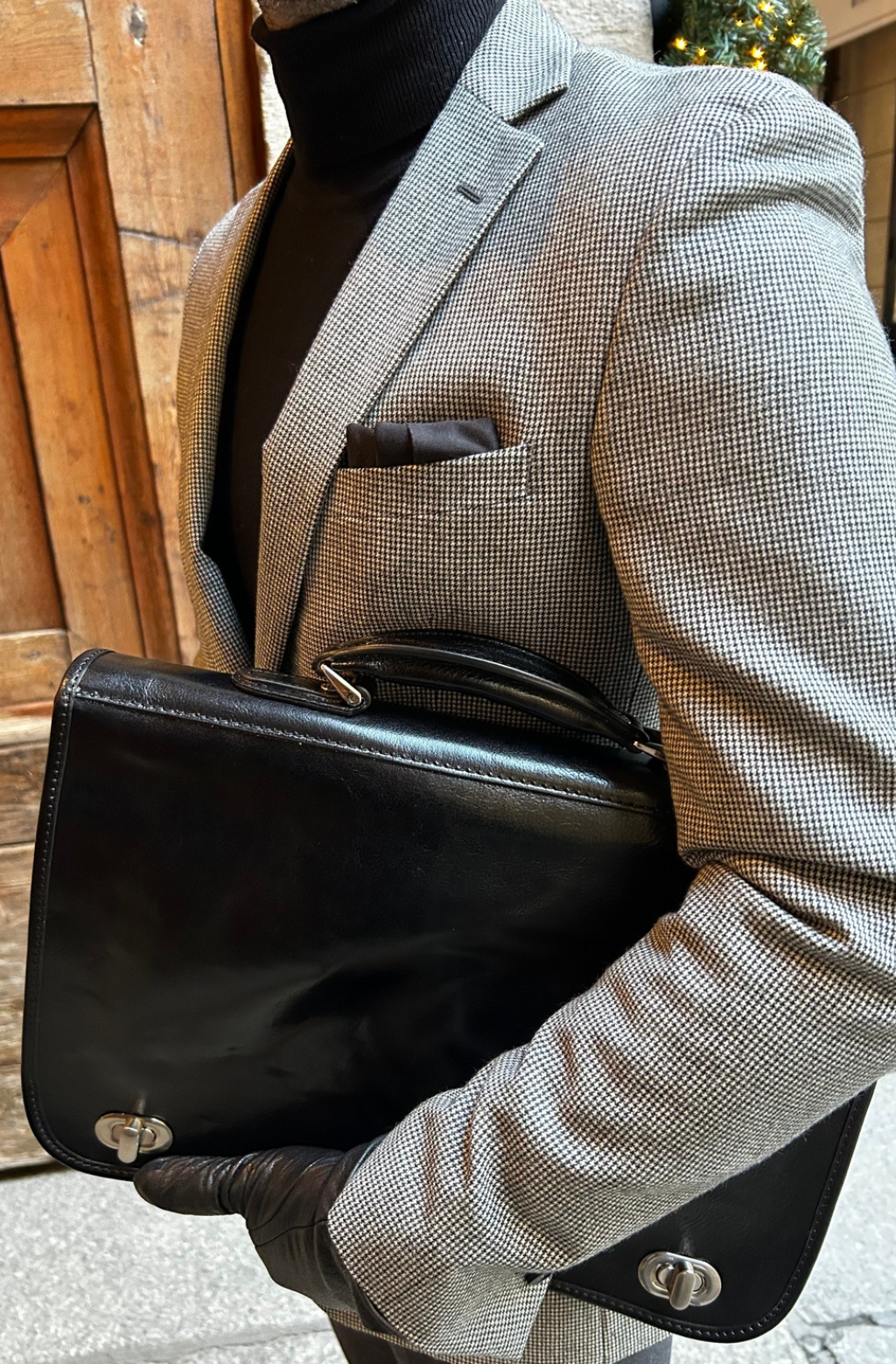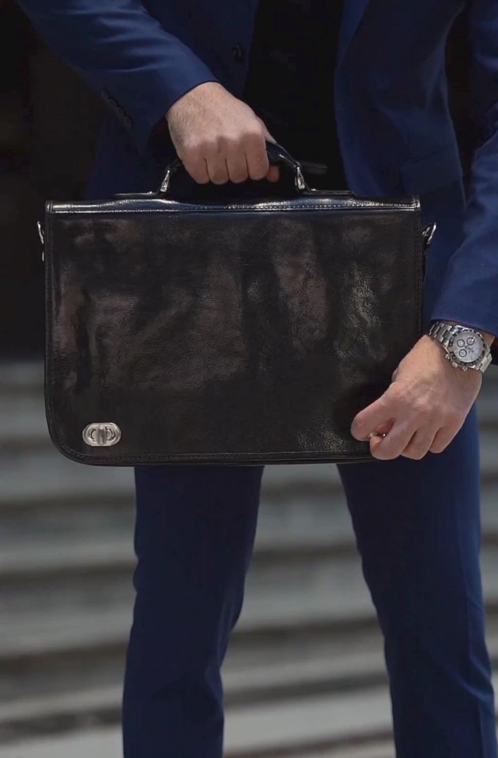 Formeel doch poëtisch. Een leren aktetas die dienst doet als brug tussen twee werelden – in staat om een artistiek accent toe te voegen aan zakelijke kleding of om casual kleding een formele glans te geven. Voor iemand die manoeuvreert tussen creatief en zakelijk. Gaat gepaard met een geest van heruitvinding.