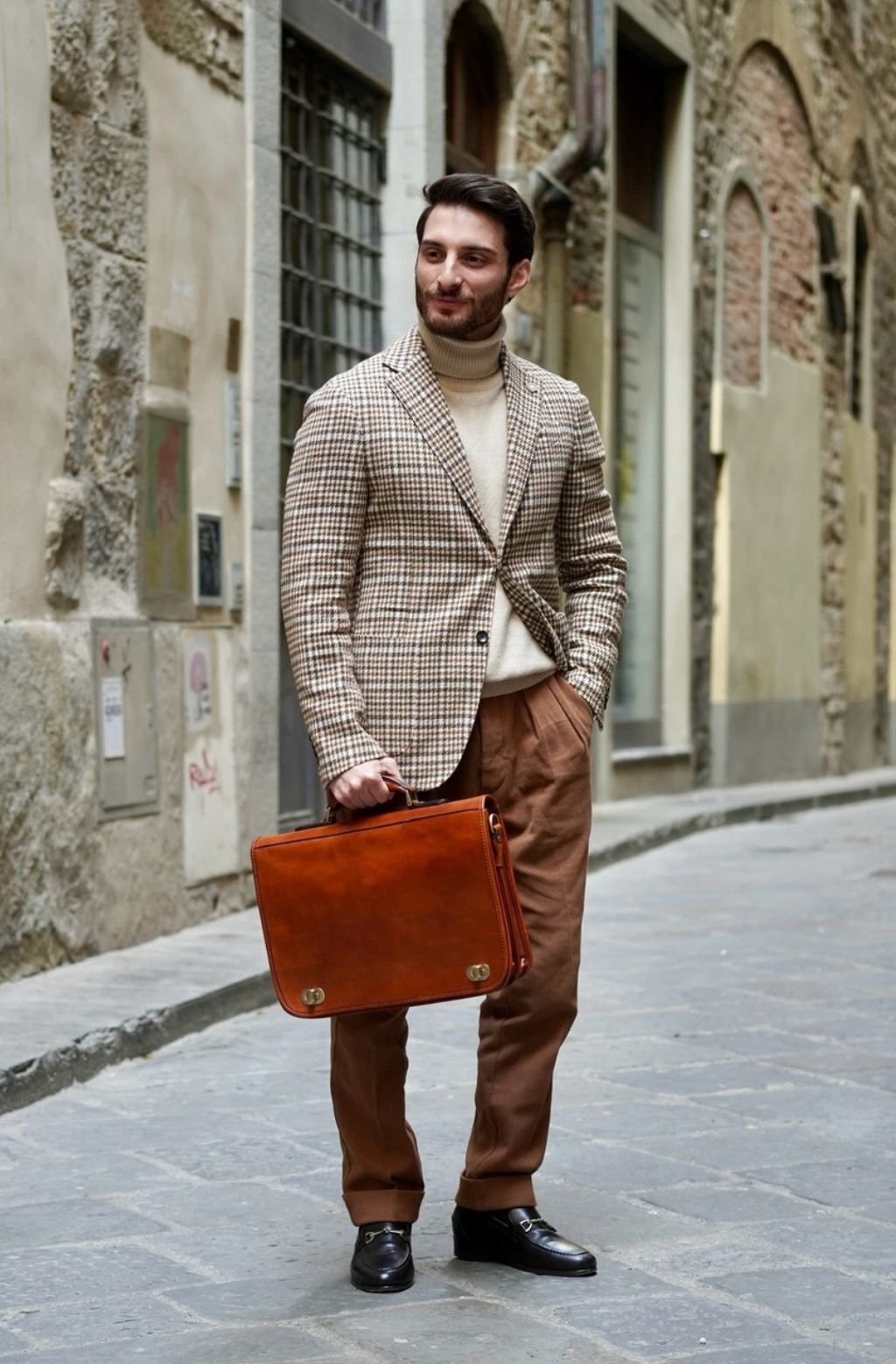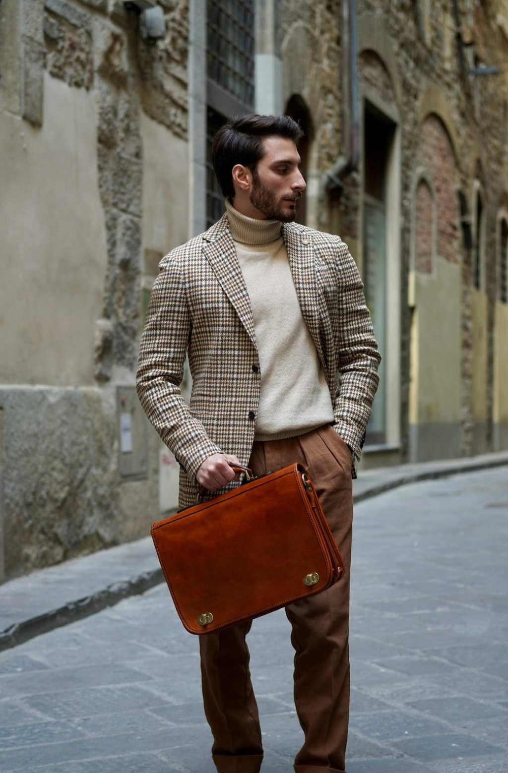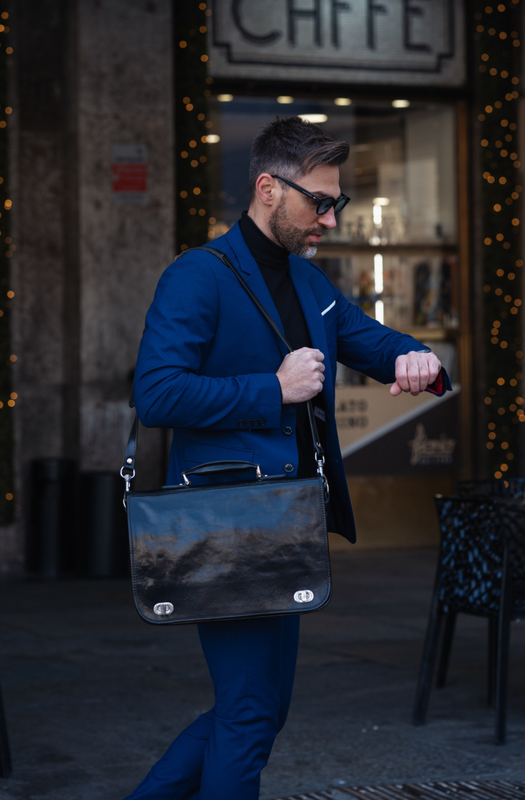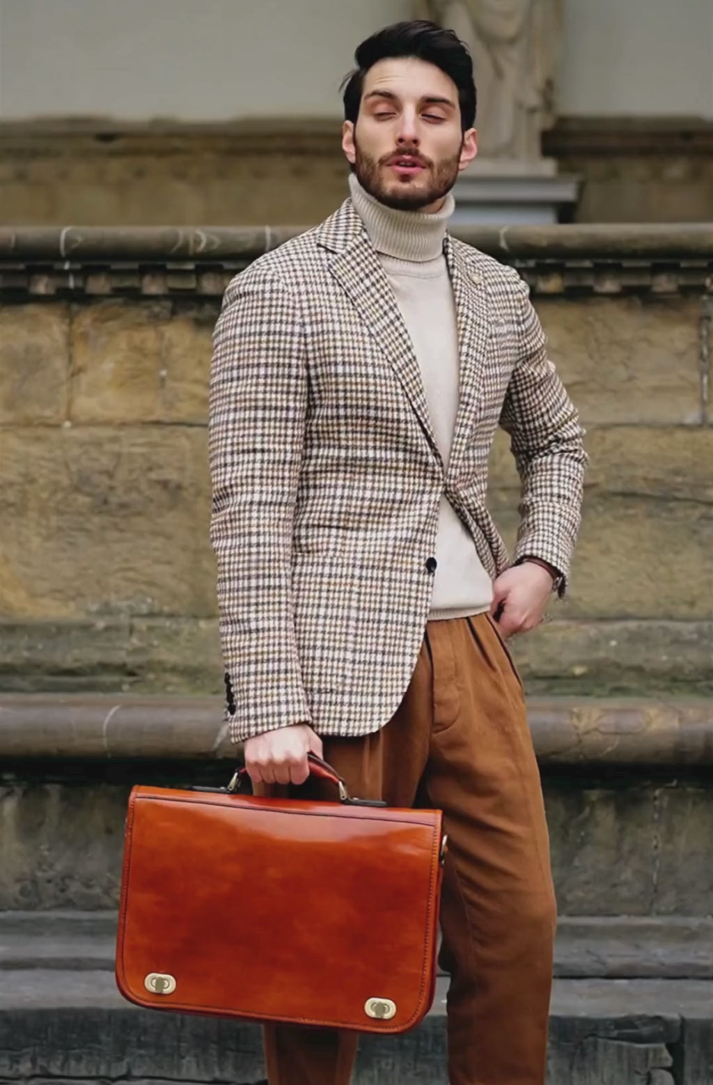 Formeel doch poëtisch. Een leren aktetas die dienst doet als brug tussen twee werelden – in staat om een artistiek accent toe te voegen aan zakelijke kleding of om casual kleding een formele glans te geven. Voor iemand die manoeuvreert tussen creatief en zakelijk. Gaat gepaard met een geest van heruitvinding.