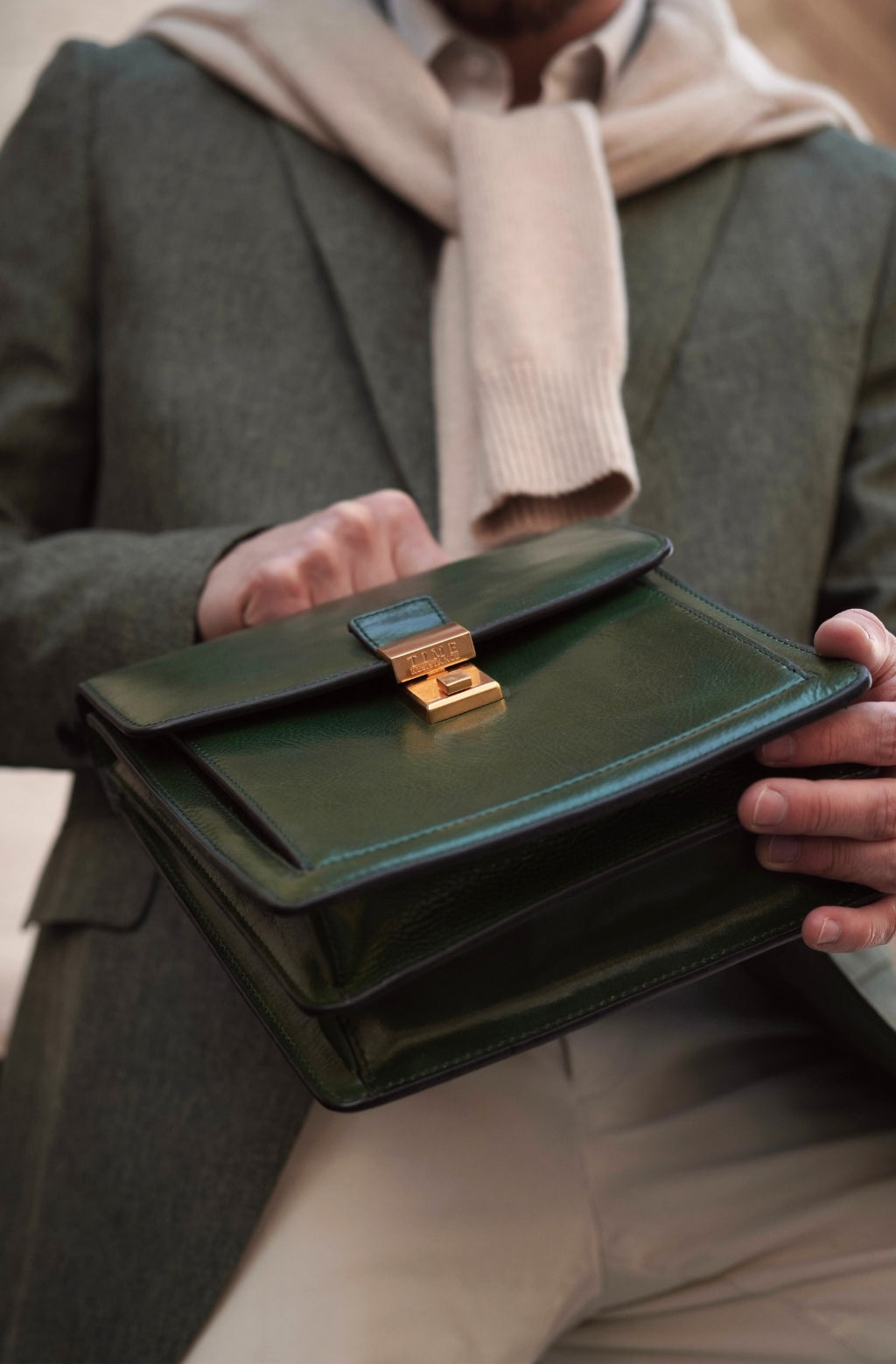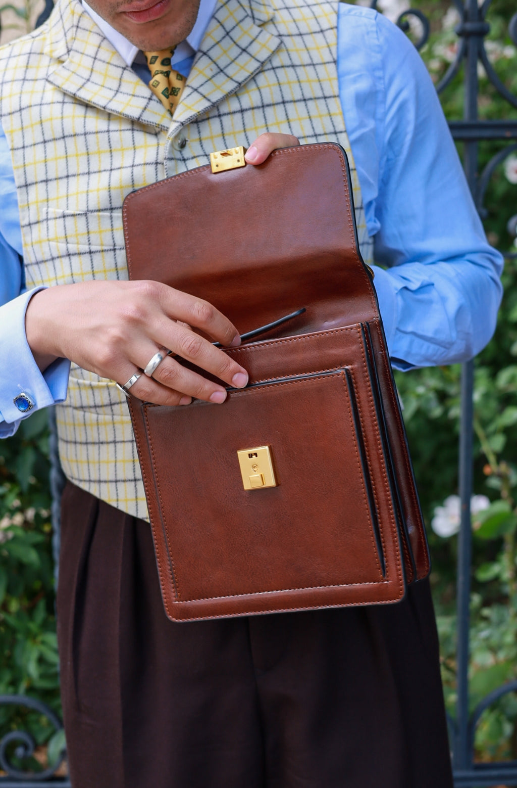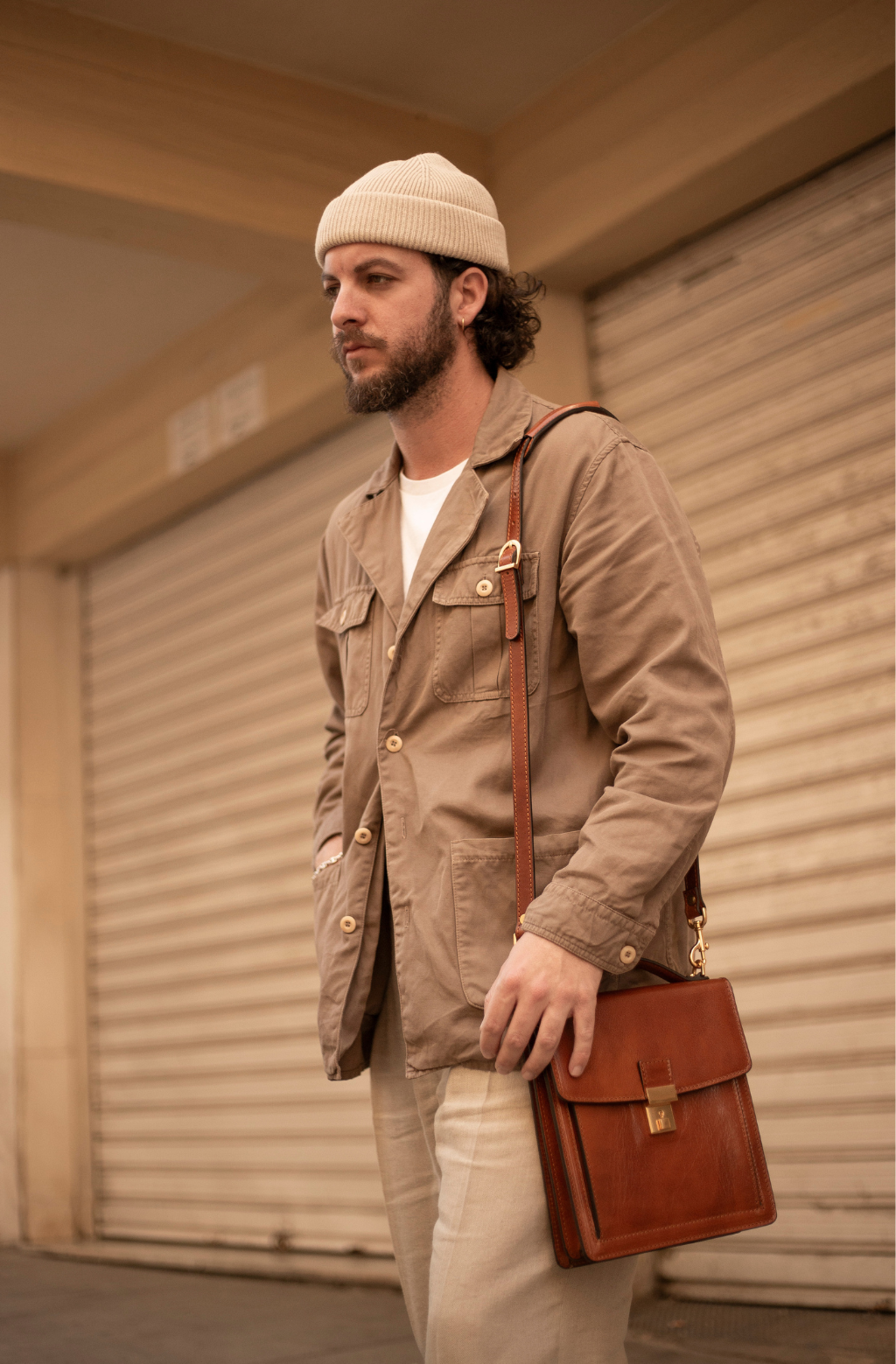 Time Resistance werkt met Italiaans Vachetta-volnerfleer: plantaardig gelooid en met de hand geverfd. Het ontwikkelt een rijke, elegante patina.