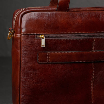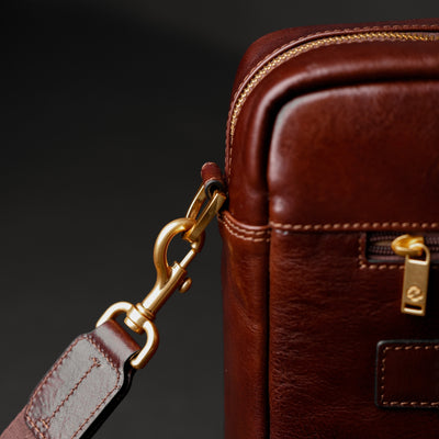 Time Resistance werkt met Italiaans Vachetta-volnerfleer: plantaardig gelooid en met de hand geverfd. Het ontwikkelt een rijke, elegante patina.