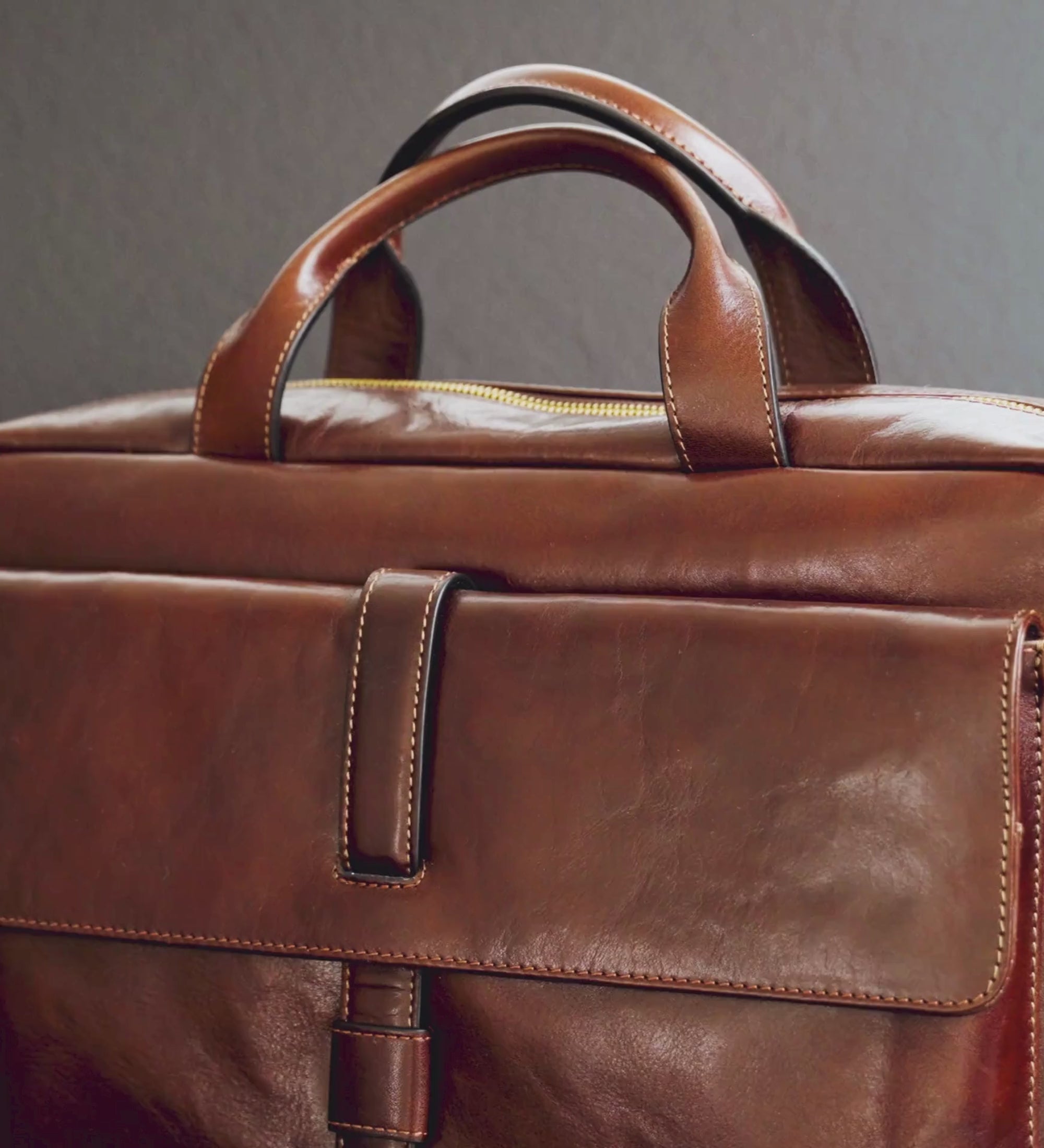 Voor wie het leven doelgericht en met stijl tegemoet treedt, is deze leren aktetas de perfecte metgezel. Gemaakt van Italiaans volnerfleer, waardoor hij moeiteloos klassieke elegantie met de praktische vereisten van de moderne tijd combineert. Het is meer dan alleen een tas, het is een blijk van vertrouwen, ontworpen om uw benodigdheden met gemak en gratie te dragen. Met elk stiksel vertelt The Chateau een verhaal over vakmanschap en tijdloos design. Versterk uw professionele look en draag uw wereld met u mee in één verfijnd, functioneel product.