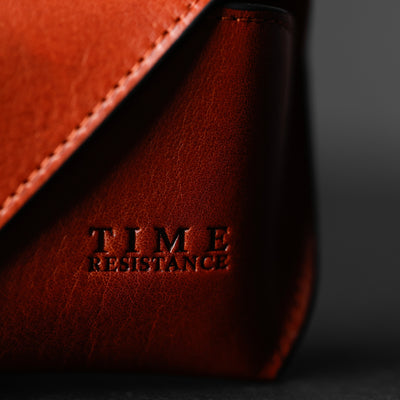 Time Resistance werkt met Italiaans Vachetta-volnerfleer: plantaardig gelooid en met de hand geverfd. Het ontwikkelt een rijke, elegante patina.
