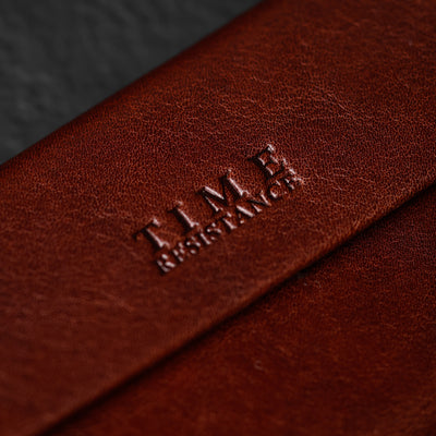 Time Resistance werkt met Italiaans Vachetta-volnerfleer: plantaardig gelooid en met de hand geverfd. Het ontwikkelt een rijke, elegante patina.