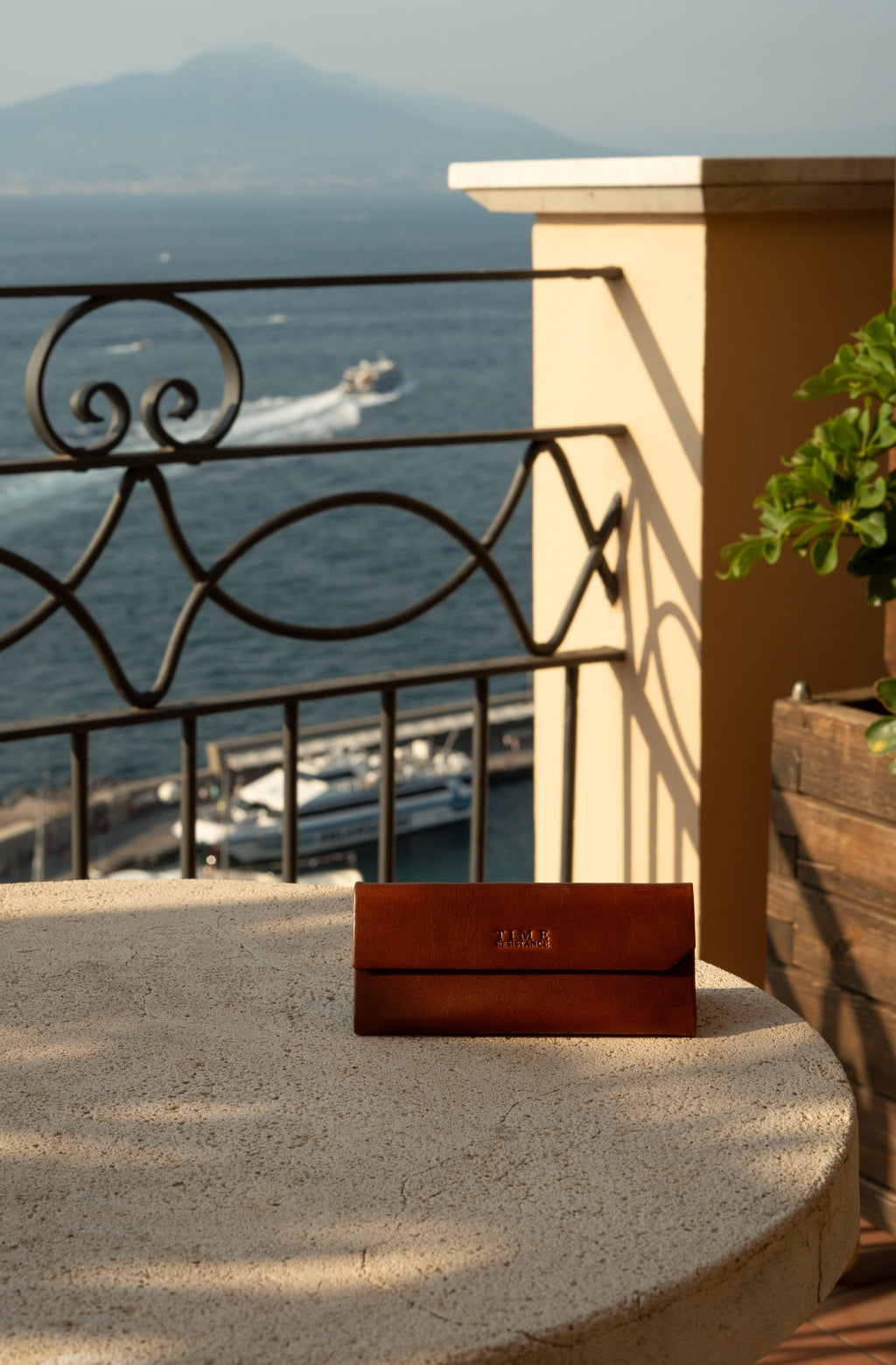 Sommige exemplaren spreken zachtjes, maar hebben toch een bepaald gewicht. The Riddle of the Sands is zo'n exemplaar, gemaakt van volnerf Italiaans leer en vormgegeven door het soort bedachtzaamheid waardoor functionaliteit aanvoelt als poëzie. Een stevig schild voor uw bril wanneer u hem nodig hebt en flinterdun opvouwbaar wanneer u hem niet nodig hebt. De magneetsluiting sluit op een zachte, gracieuze manier, niet lomp. Ingetogen, intelligent en onmiskenbaar verfijnd. Het is een alledaags, maar verheven object.