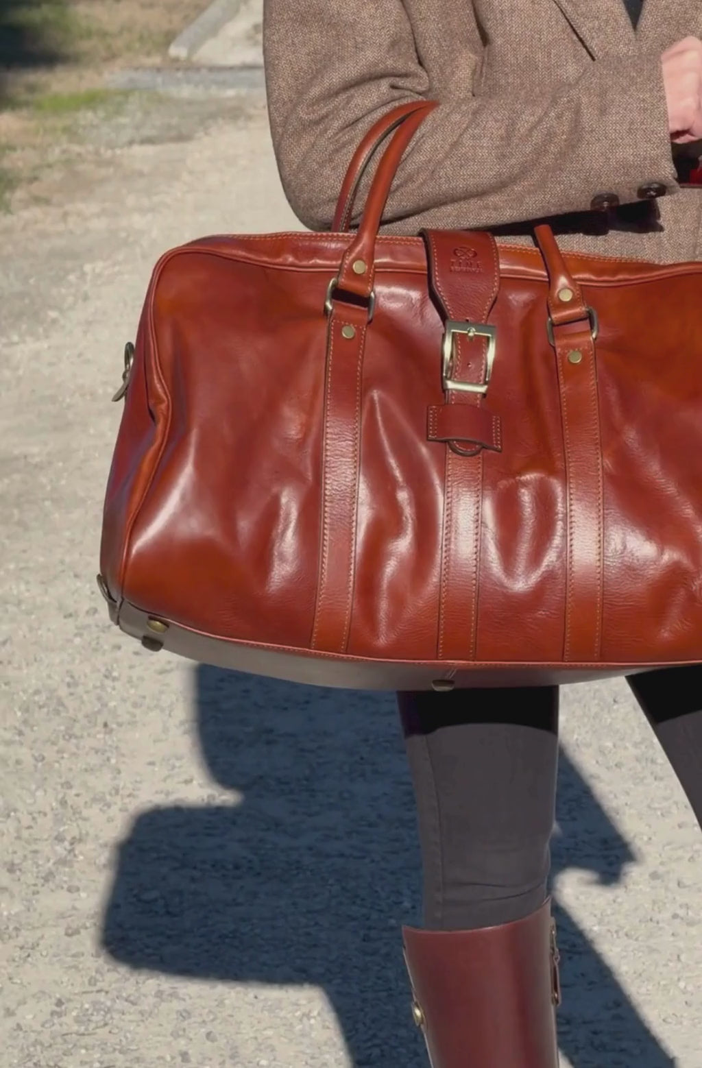 Cognacbruine mat leren reistas voor dames - Tender Is the Night