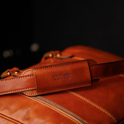 Time Resistance werkt met Italiaans Vachetta-volnerfleer: plantaardig gelooid en met de hand geverfd. Het ontwikkelt een rijke, elegante patina.