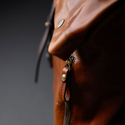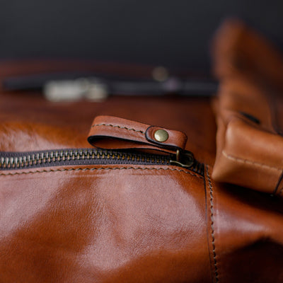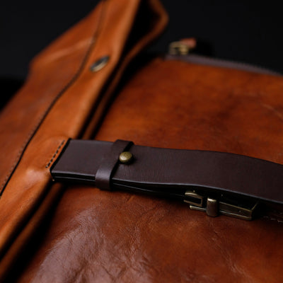 Time Resistance werkt met Italiaans Vachetta-volnerfleer: plantaardig gelooid en met de hand geverfd. Het ontwikkelt een rijke, elegante patina.