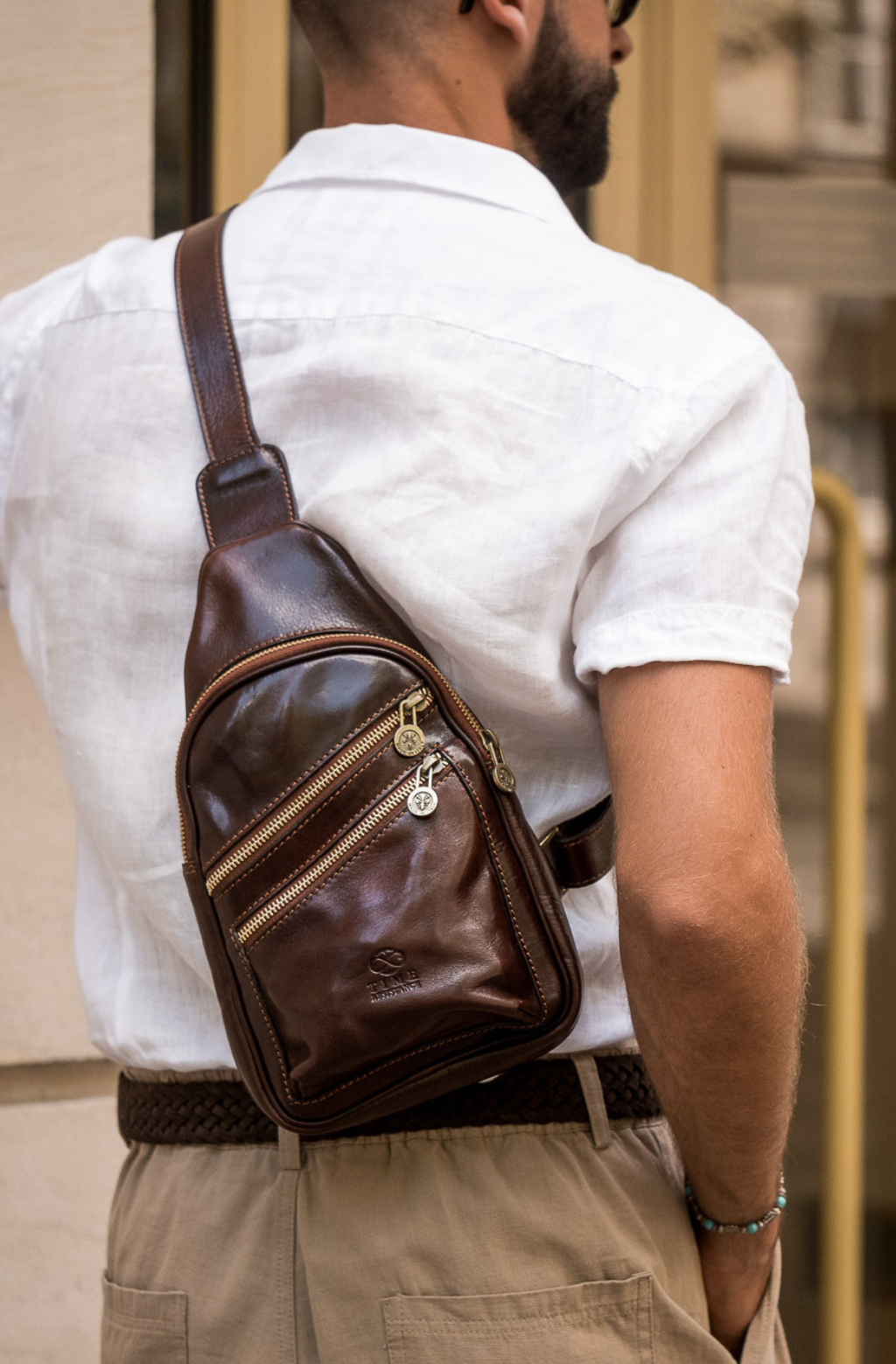 Time Resistance werkt met Italiaans Vachetta-volnerfleer: plantaardig gelooid en met de hand geverfd. Het ontwikkelt een rijke, elegante patina.