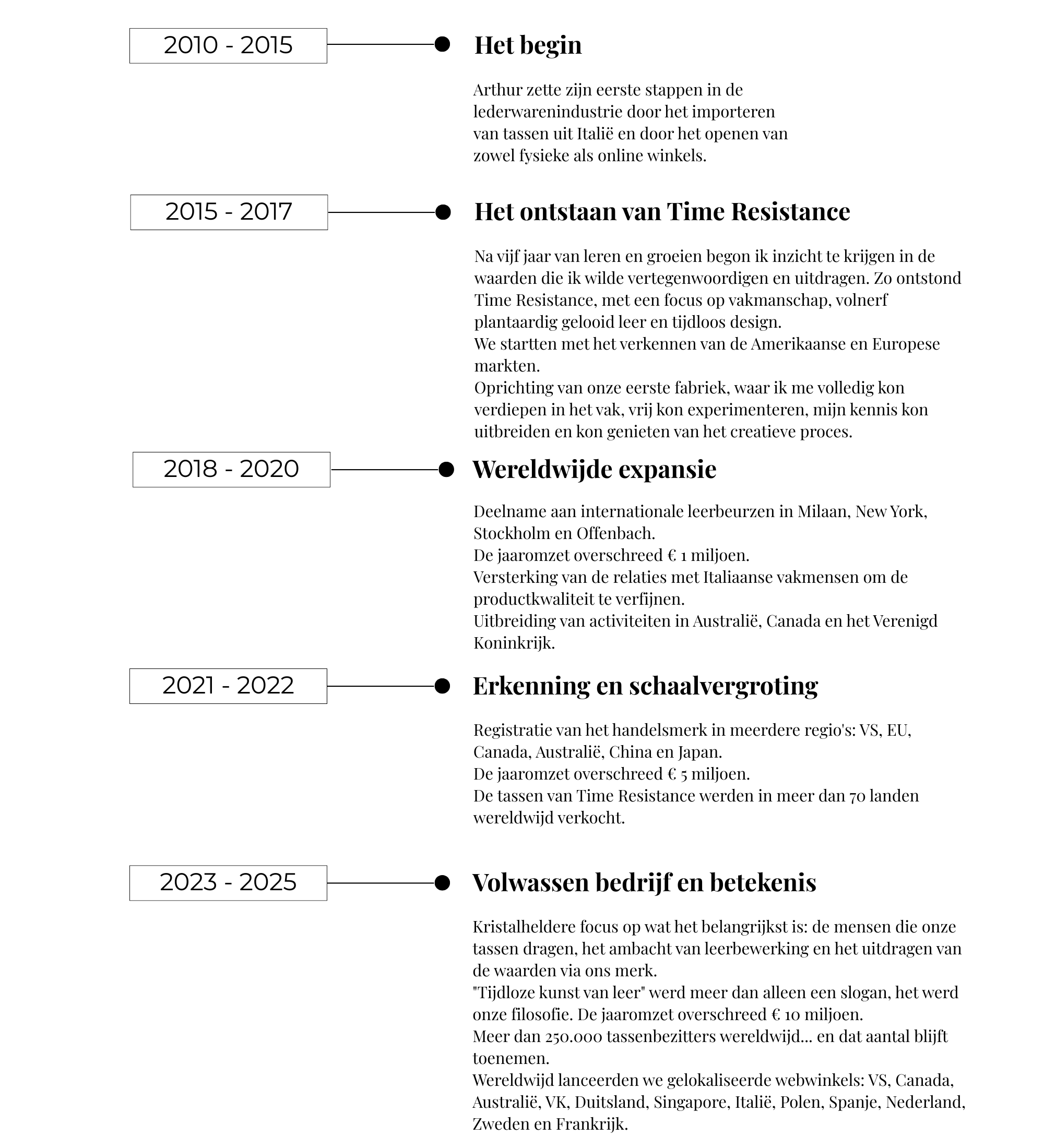 “Soms mis ik de tijden waarin ik nooit heb geleefd, toen de dingen nog echt waren. Toen mensen minder spullen bezaten, maar er meer liefde voor koesterden. Toen kwaliteit nog een verwachting was, geen luxe. Toen leer nog een karakter had, geen coatings. Ik zet me elke dag in om minder, maar verfijndere producten te maken. Voor mensen die de voorkeur geven aan betekenis in plaats van aan overvloed.”