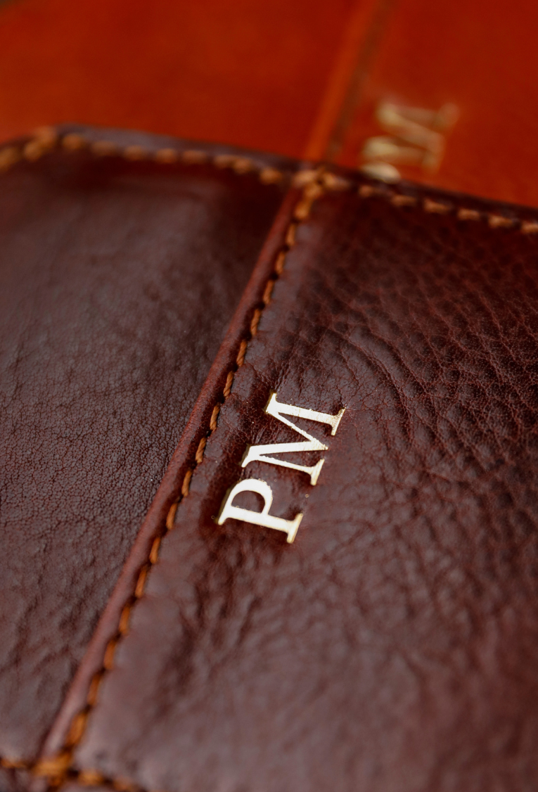 Voor een tijdloos en verfijnd accent kunt u overwegen een monogram aan uw leren accessoire toe te voegen. Onze blinddruk-service drukt uw initialen in het leer en creëert op die manier een subtiel, maar opvallend effect. Om uw item met een monogram te personaliseren, selecteert u de optie “personalisering” tijdens het plaatsen van uw bestelling en geeft u de volgende gegevens op in de "speciale instructies" in uw winkelwagen: