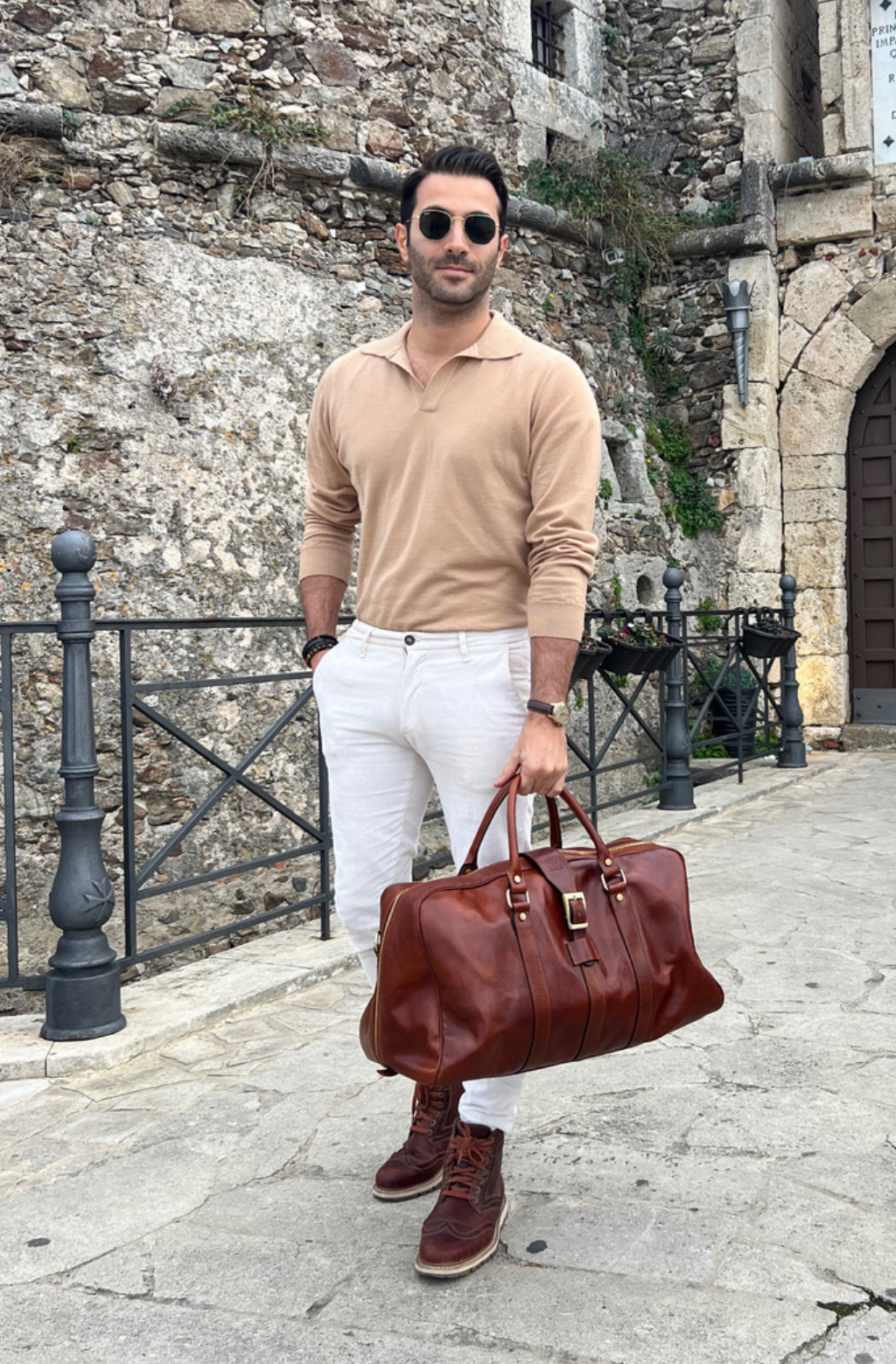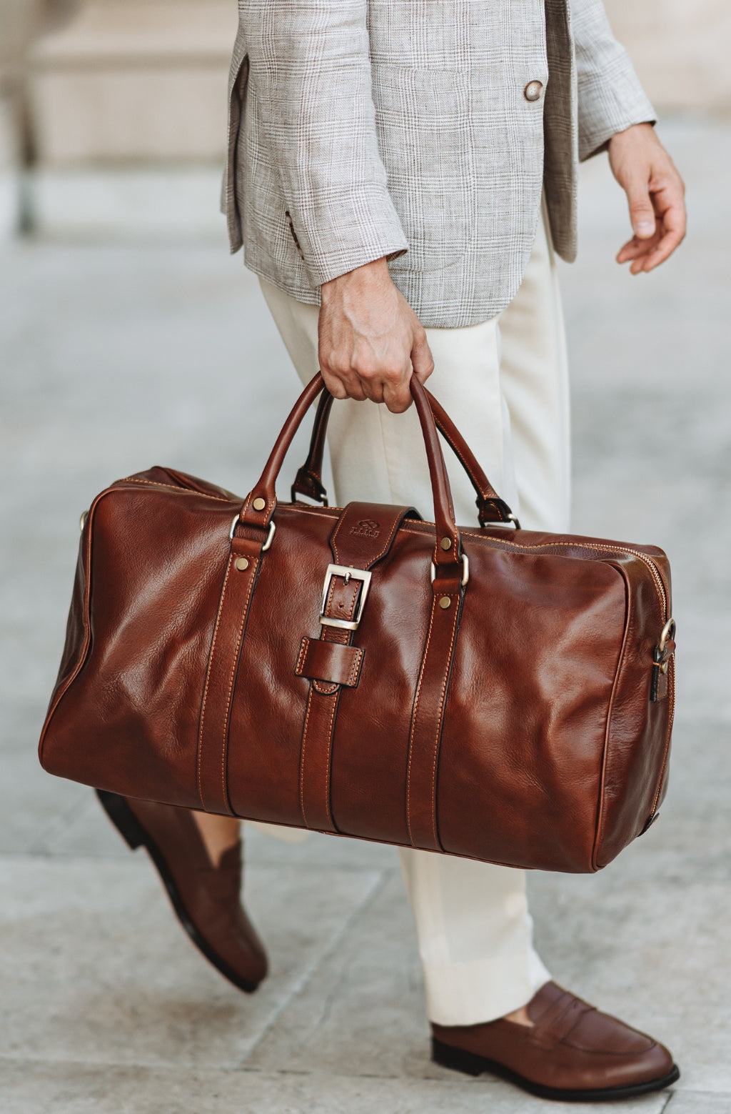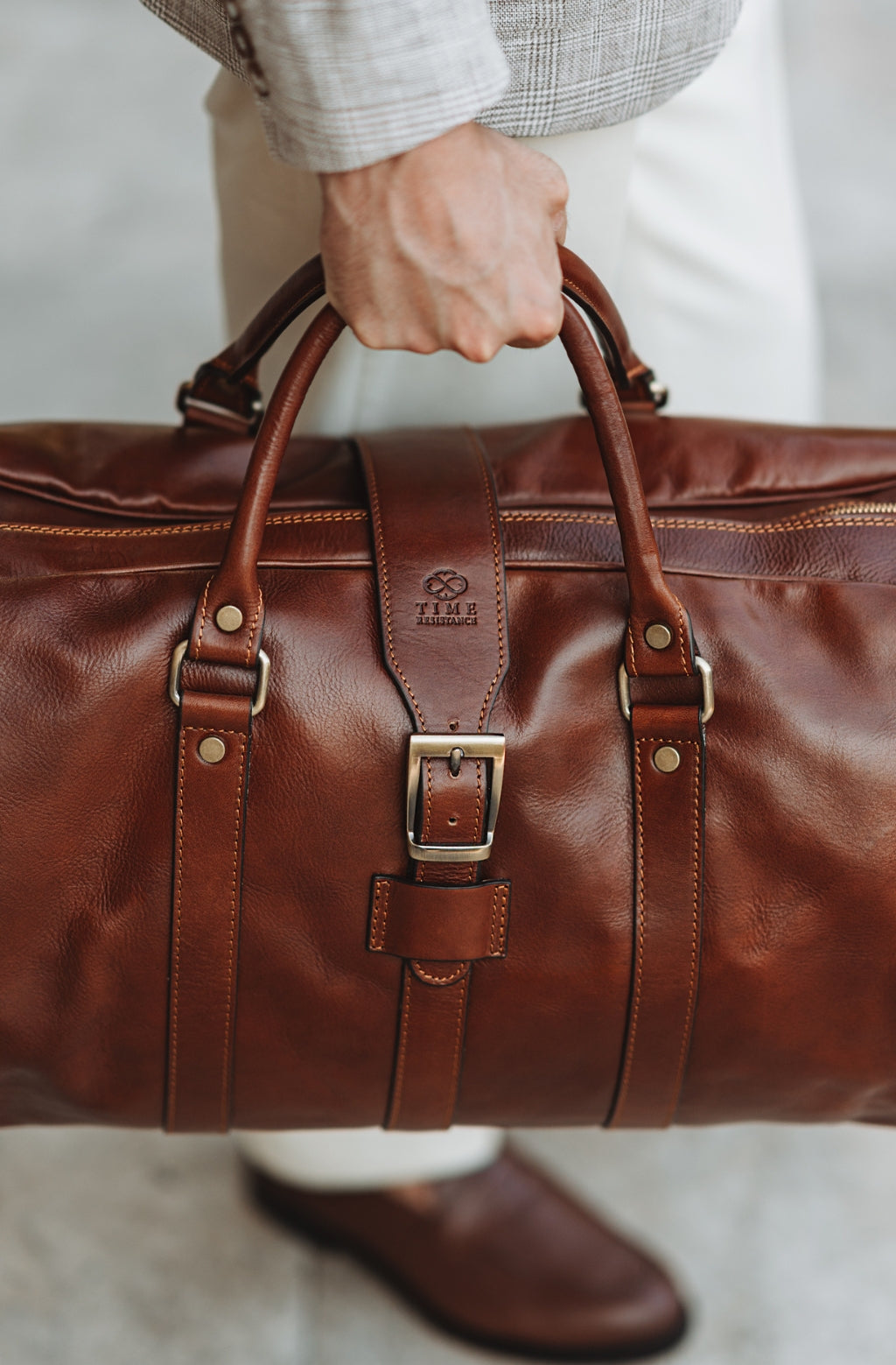 Time Resistance werkt met Italiaans Vachetta-volnerfleer: plantaardig gelooid en met de hand geverfd. Het ontwikkelt een rijke, elegante patina.