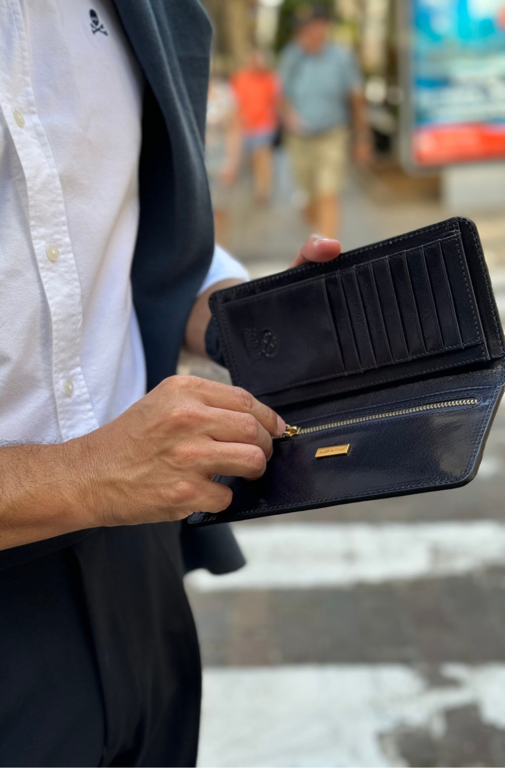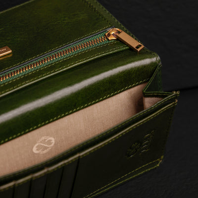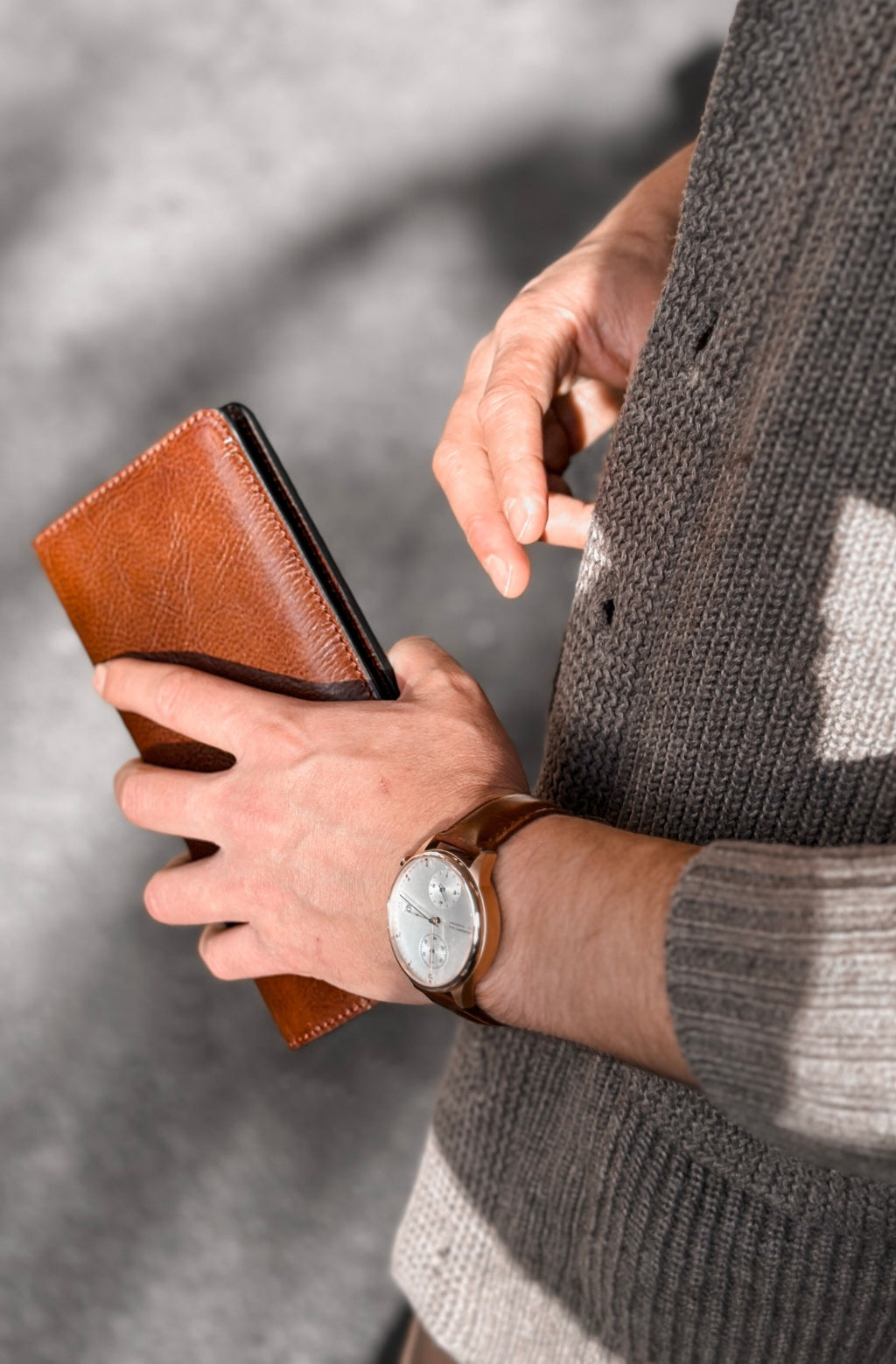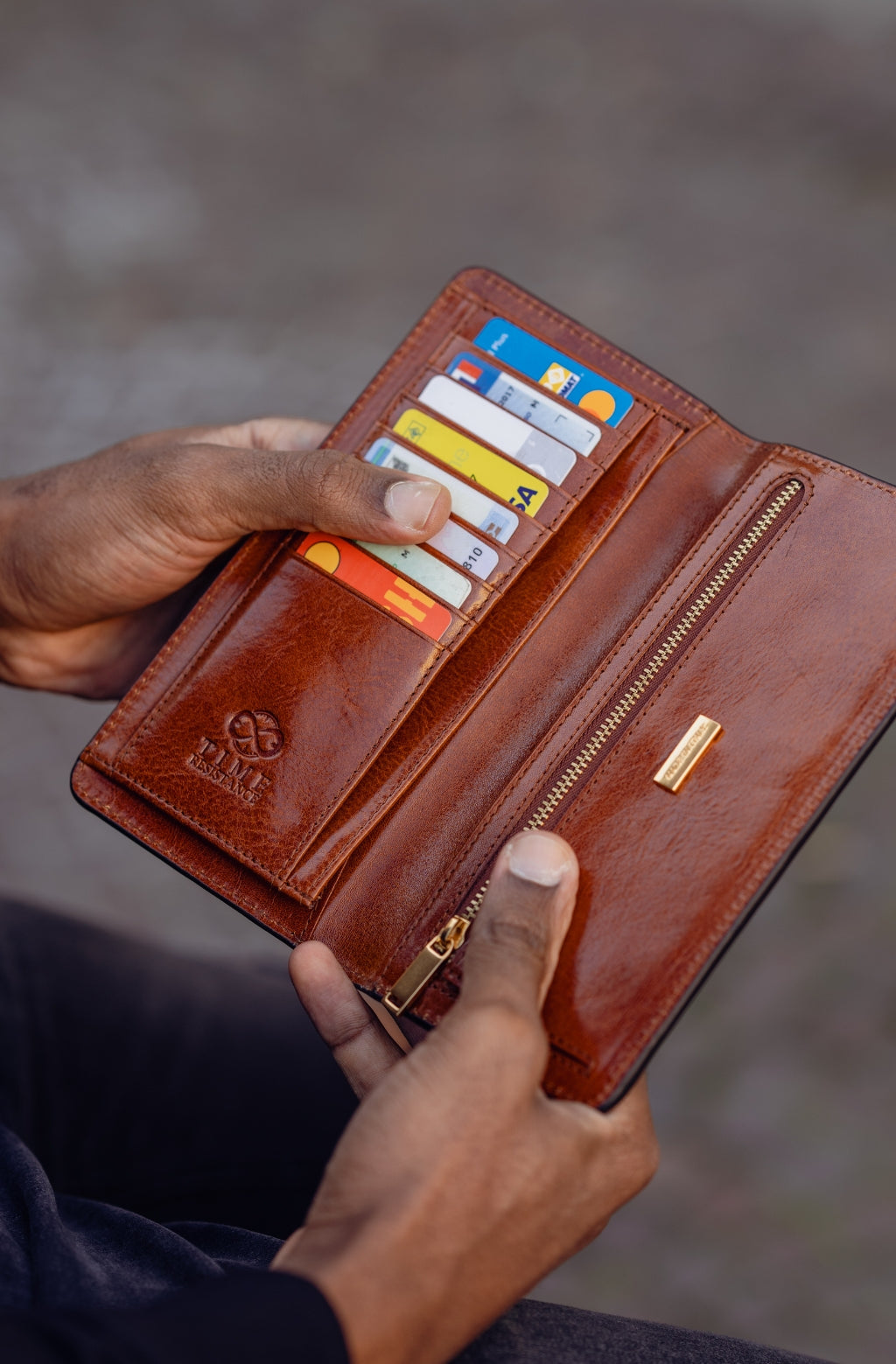 Time Resistance werkt met Italiaans Vachetta-volnerfleer: plantaardig gelooid en met de hand geverfd. Het ontwikkelt een rijke, elegante patina.