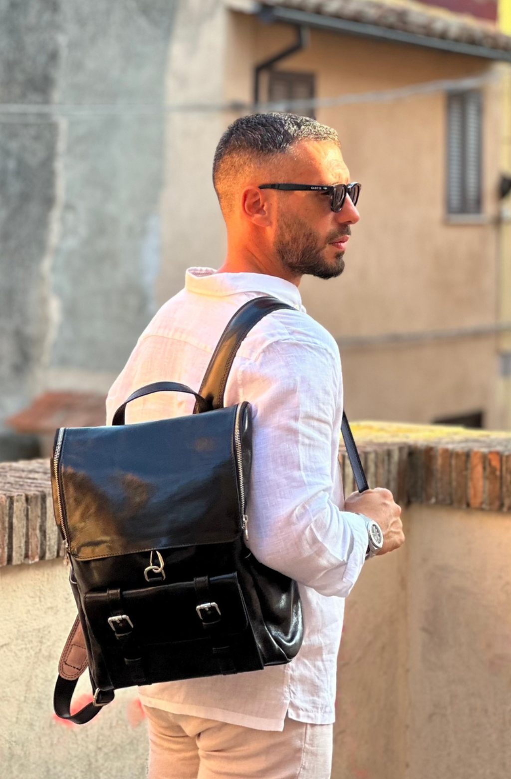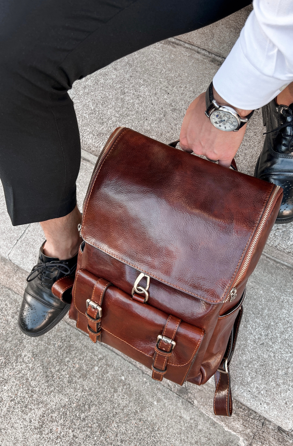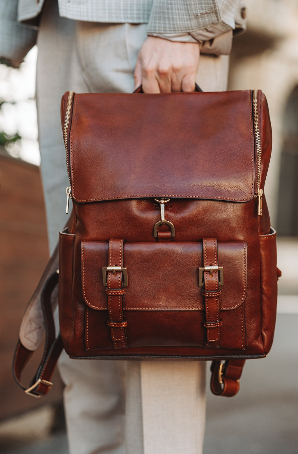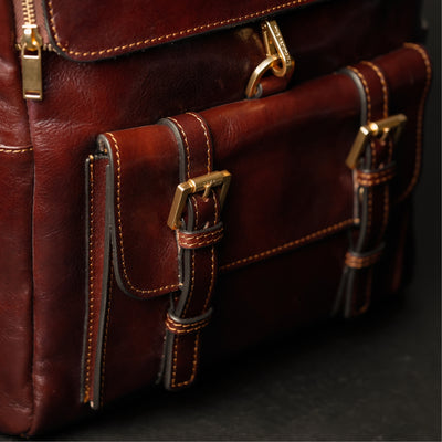 Time Resistance werkt met Italiaans Vachetta-volnerfleer: plantaardig gelooid en met de hand geverfd. Het ontwikkelt een rijke, elegante patina.