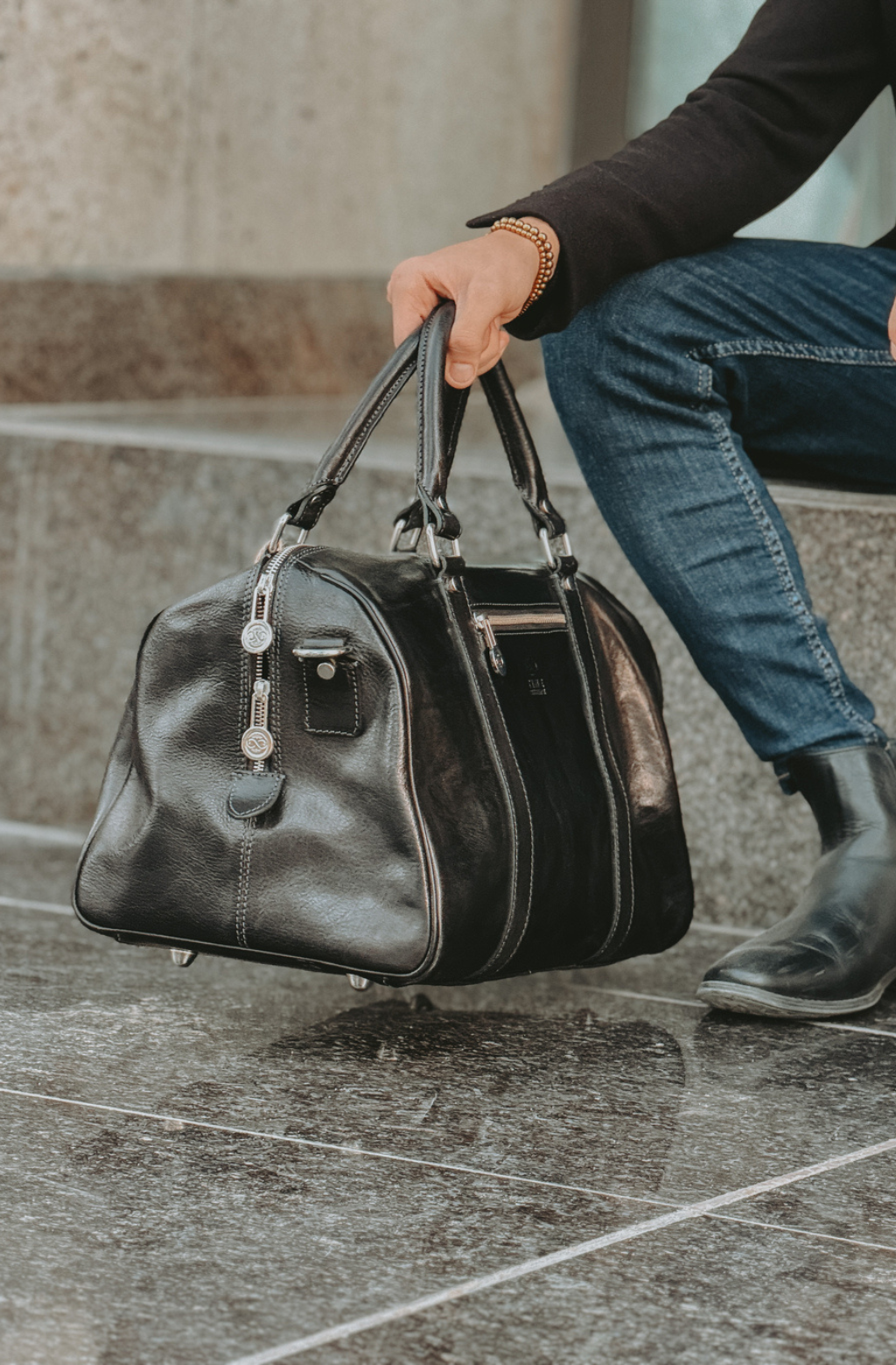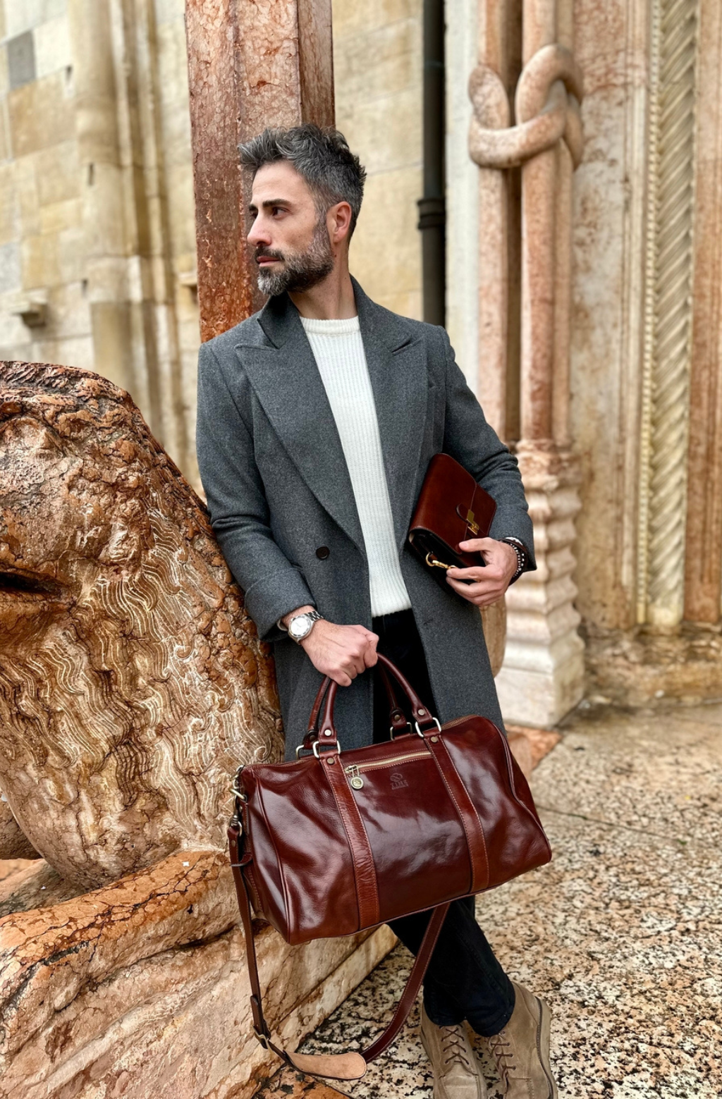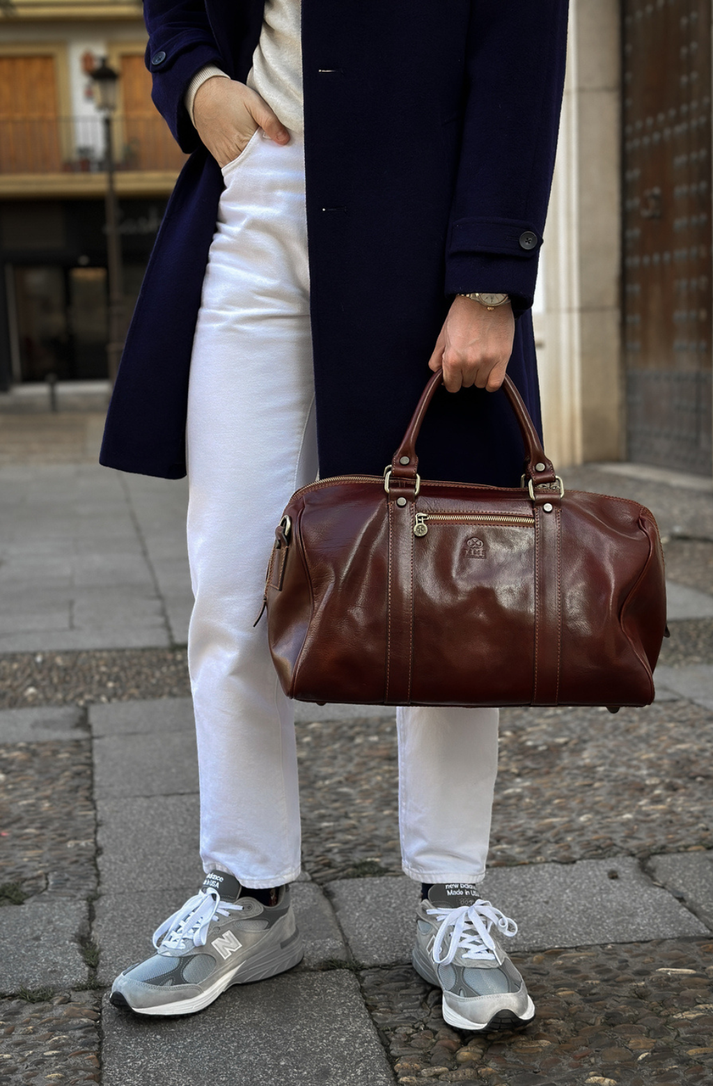 Time Resistance werkt met Italiaans Vachetta-volnerfleer: plantaardig gelooid en met de hand geverfd. Het ontwikkelt een rijke, elegante patina.