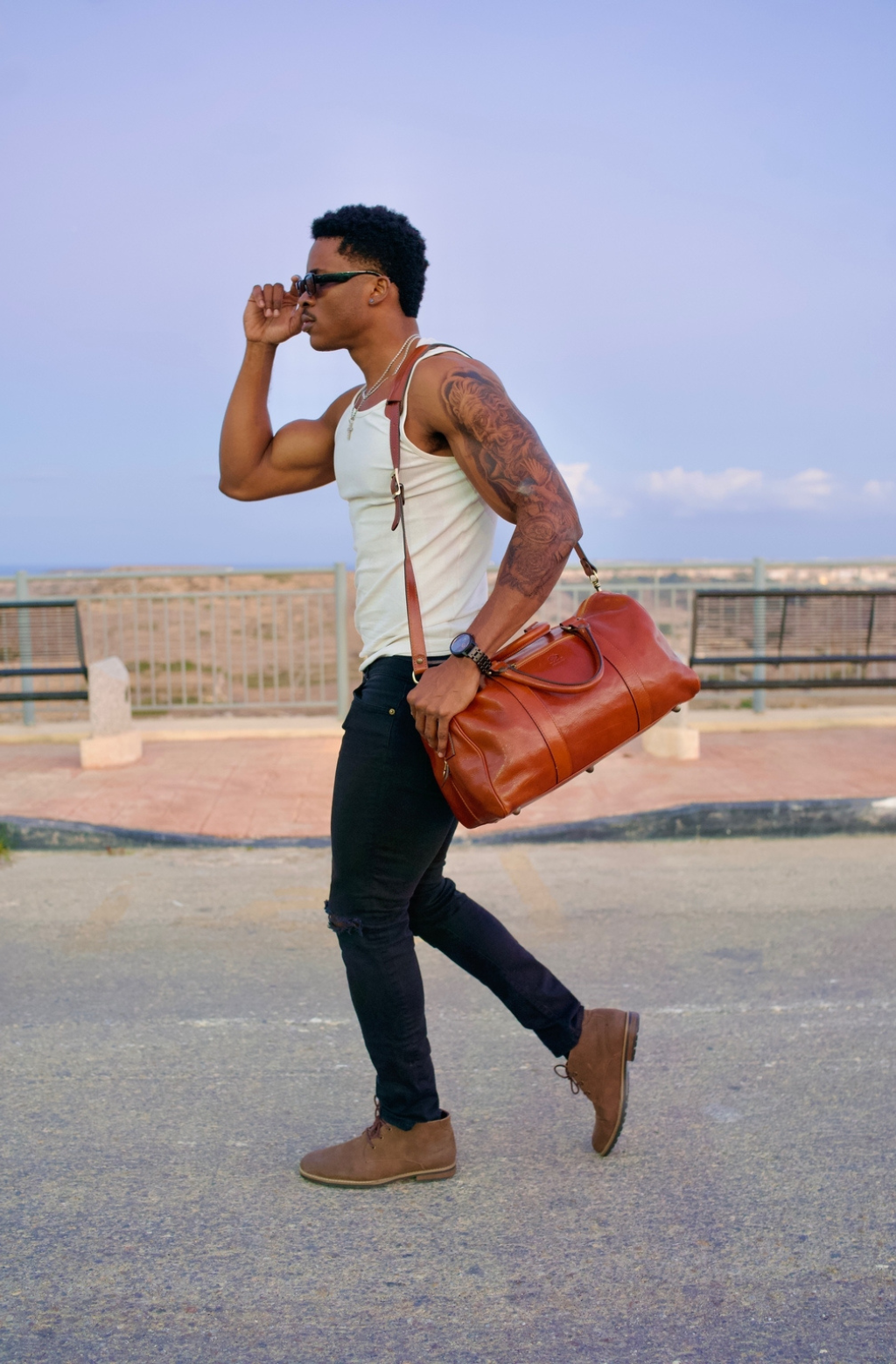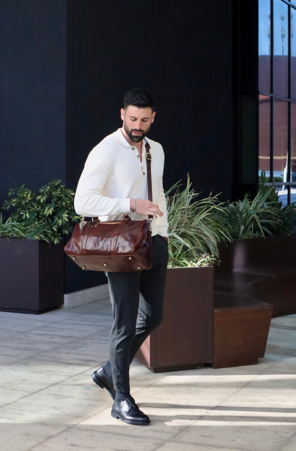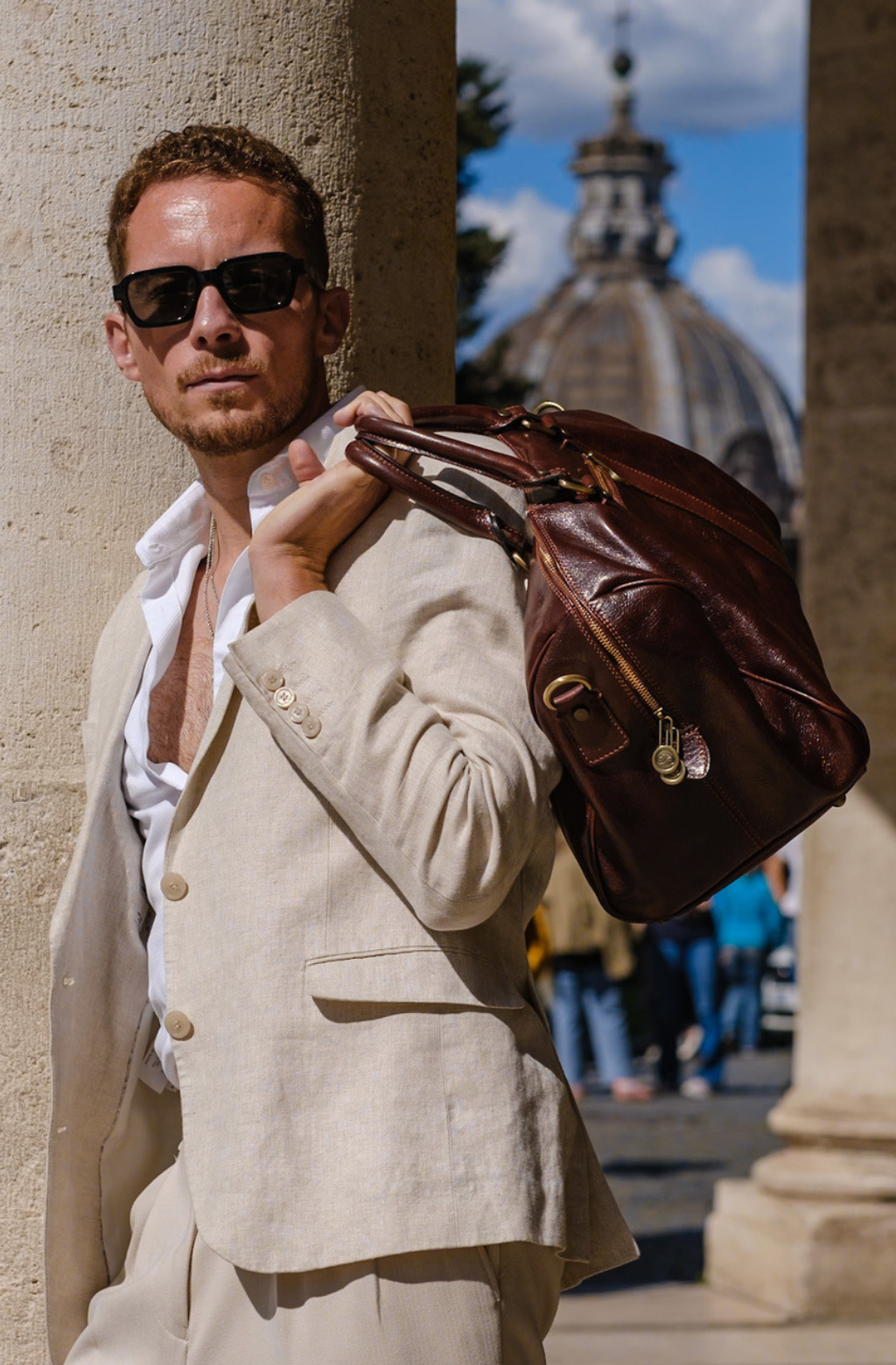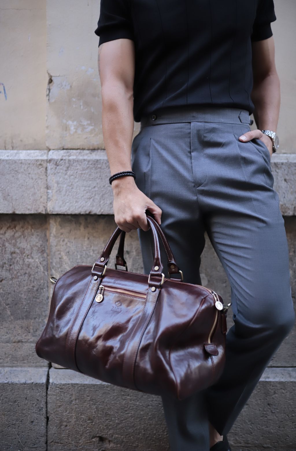 Time Resistance werkt met Italiaans Vachetta-volnerfleer: plantaardig gelooid en met de hand geverfd. Het ontwikkelt een rijke, elegante patina.