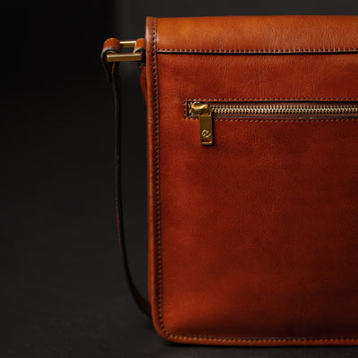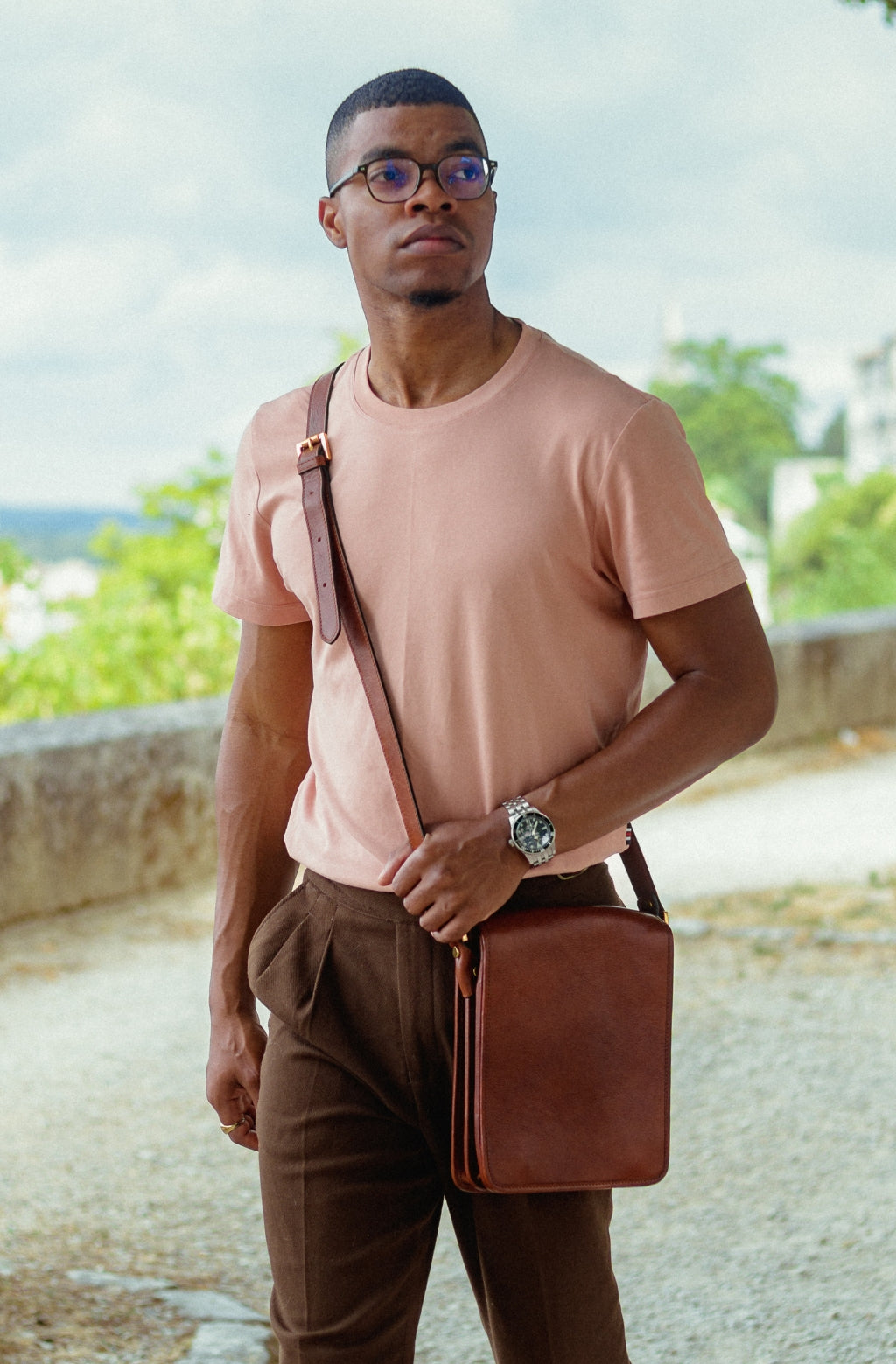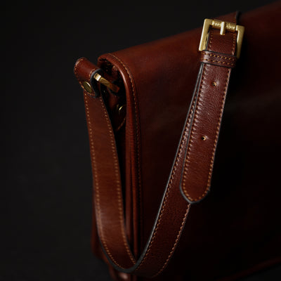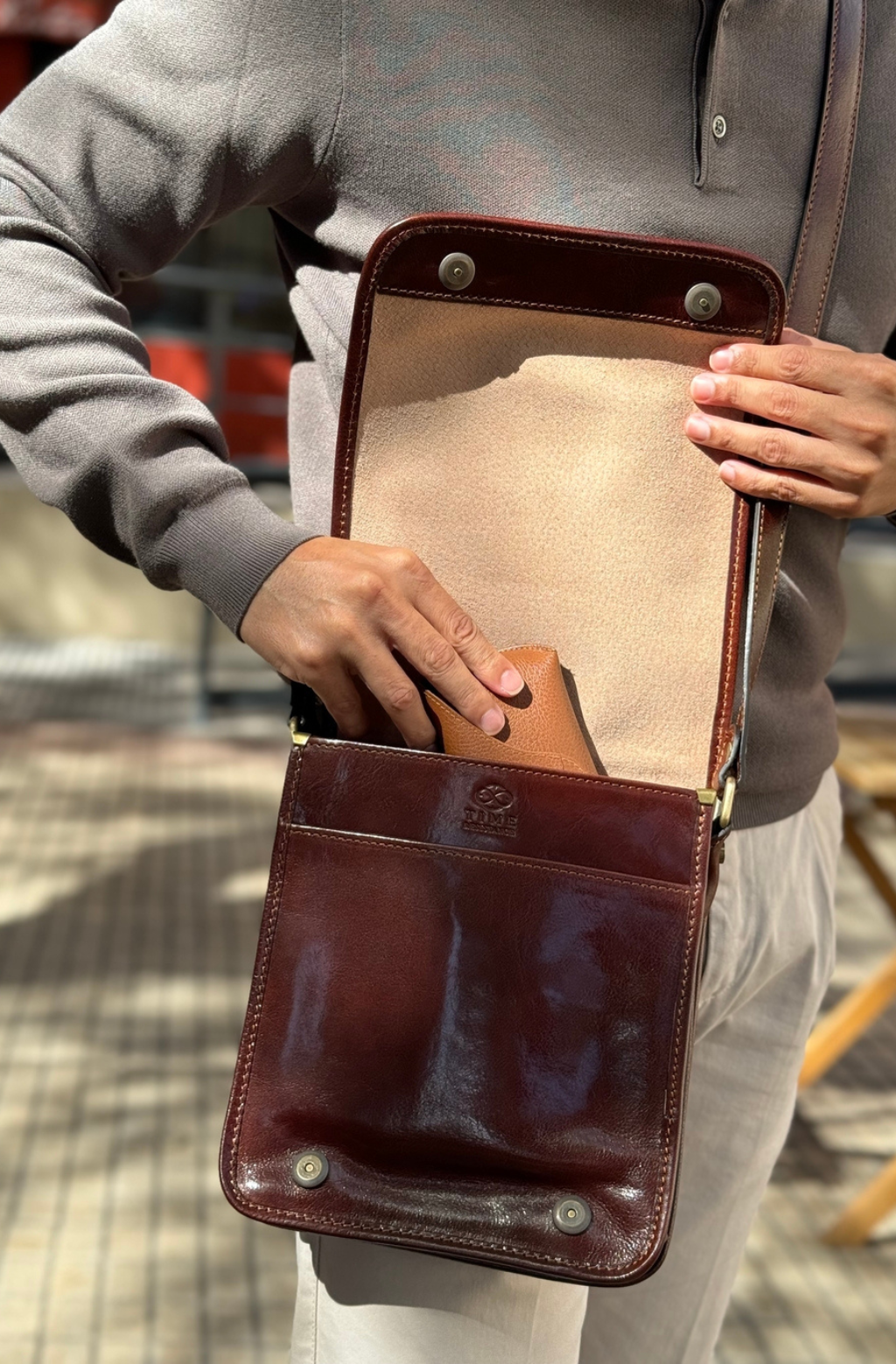 Time Resistance werkt met Italiaans Vachetta-volnerfleer: plantaardig gelooid en met de hand geverfd. Het ontwikkelt een rijke, elegante patina.