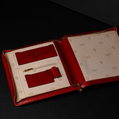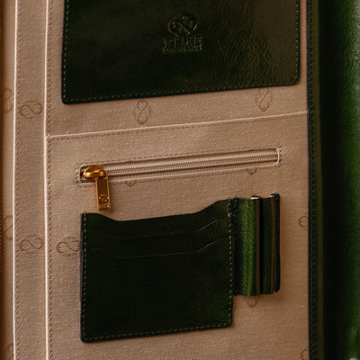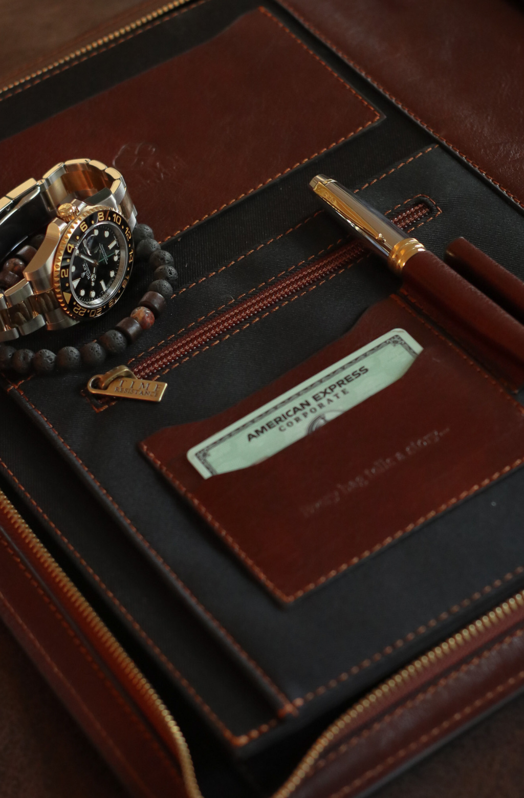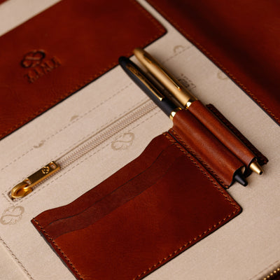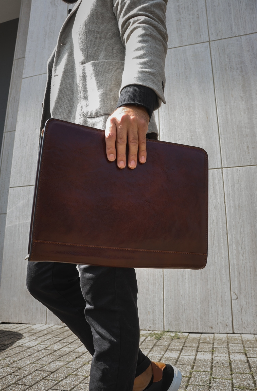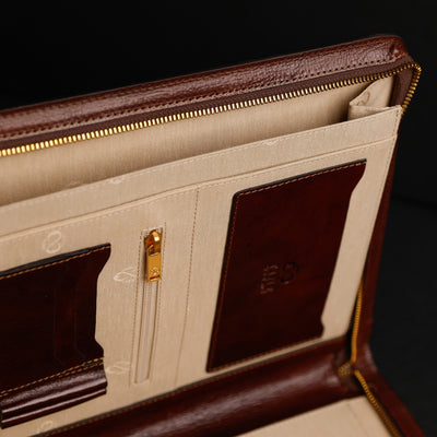 Time Resistance werkt met Italiaans Vachetta-volnerfleer: plantaardig gelooid en met de hand geverfd. Het ontwikkelt een rijke, elegante patina.