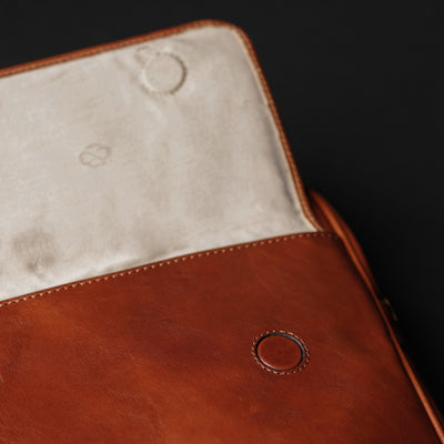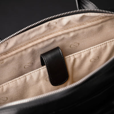 The Sheltering Sky - deze leren aktetas is een geweldige metgezel op weg naar werk of studie. Het solide uiterlijk sluit perfect aan bij de behoeften van zowel mannen als vrouwen. Gemaakt van volnerf Italiaans leer en voorzien van een trolleyband en een afneembare schouderriem, waardoor hij perfect is voor op reis. In de ruime vakken passen documenten van 216 x 356 mm, documenten van A4-formaat en mappen, en er is ook ruimte voor een 15-inch laptop. En alsof dat nog niet genoeg is, hebben we aan de voorkant een extra vak met flap gemaakt met een extra sterke magneetsluiting, ideaal om uw belangrijkste spullen gemakkelijk bij de hand te houden.