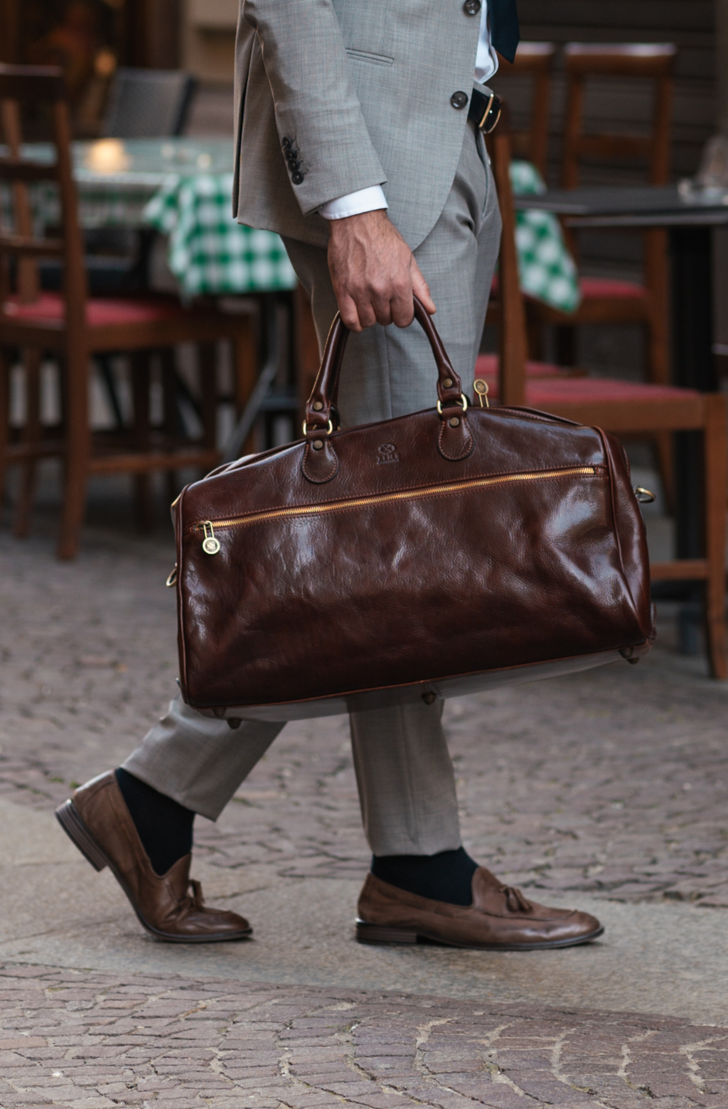 Deze leren duffeltas combineert een beproefd design met de behoeften van het moderne leven. Ruim genoeg om u te vergezellen tijdens een weekendje weg, een korte zakenreis of om te dienen als weekendtas wanneer u niet zeker weet wat de avond zal brengen.