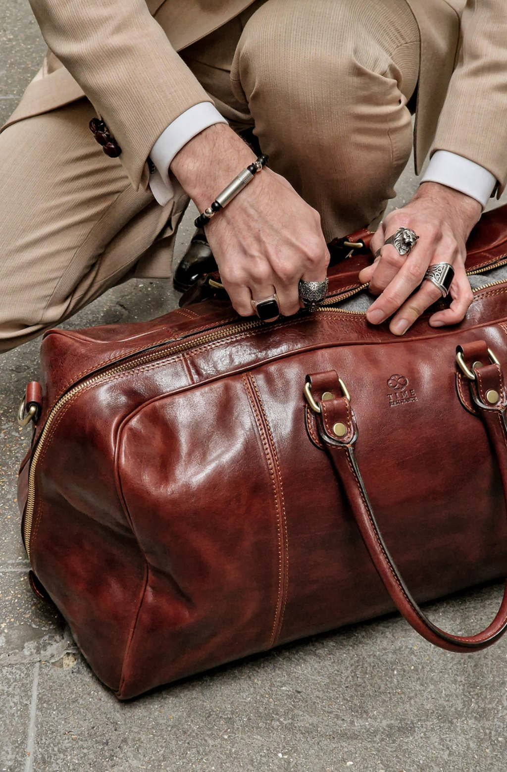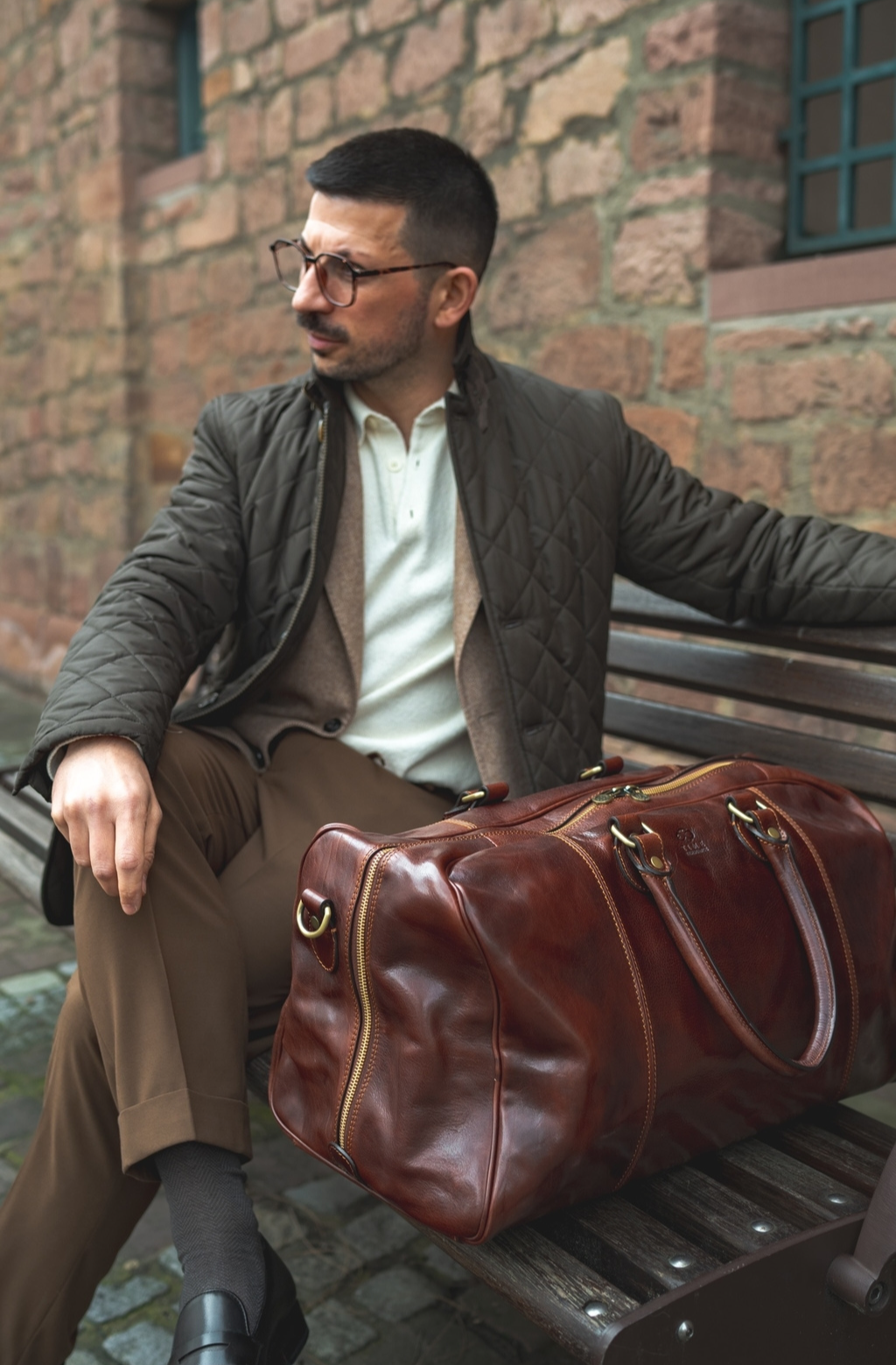 Deze duffeltas van volnerfleer zal u graag vergezellen op al uw reizen, zowel voor zaken als voor plezier. Sterker nog, hoe vaker u deze vriend meeneemt op reis, hoe beter hij eruit zal zien.