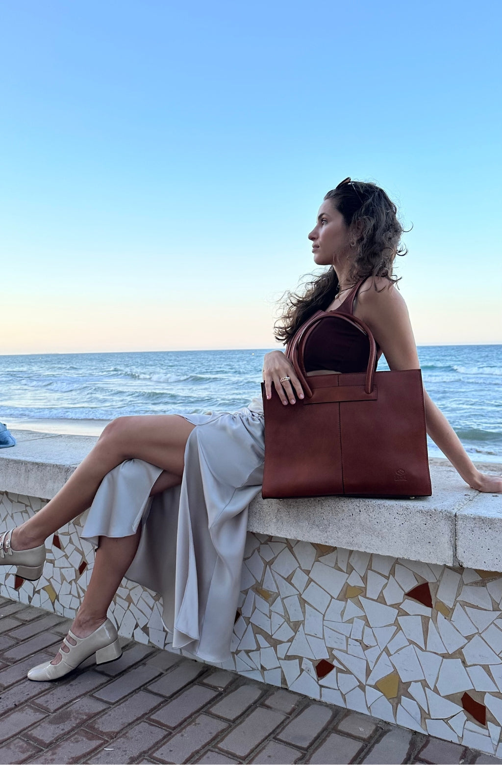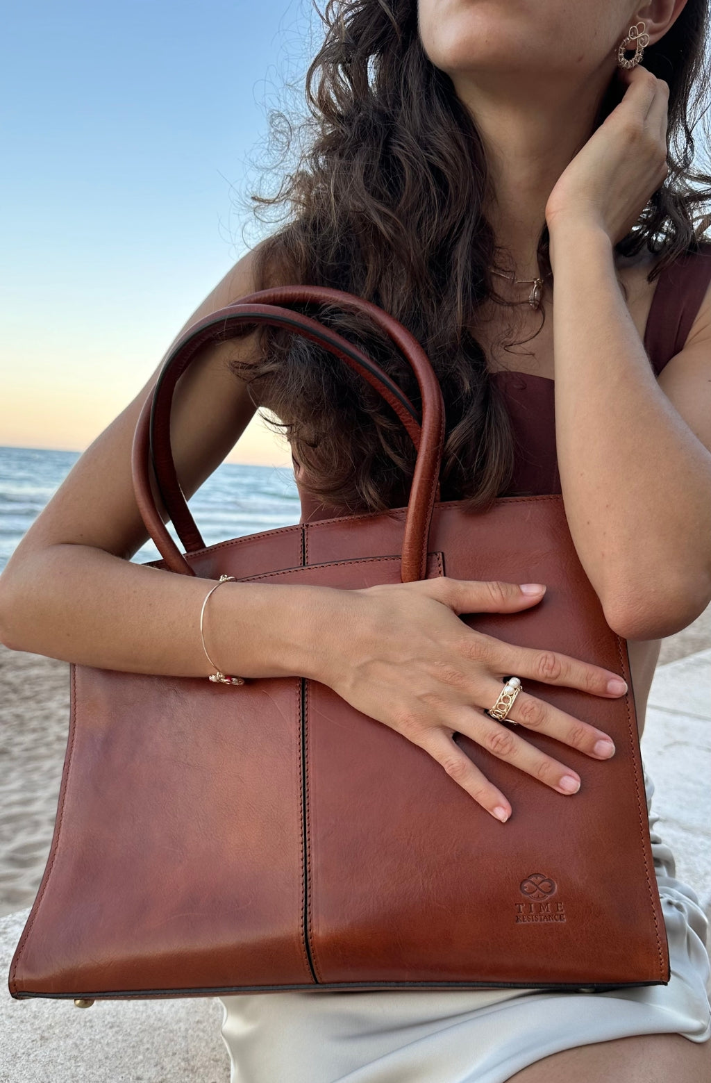 Time Resistance werkt met Italiaans Vachetta-volnerfleer: plantaardig gelooid en met de hand geverfd. Het ontwikkelt een rijke, elegante patina.