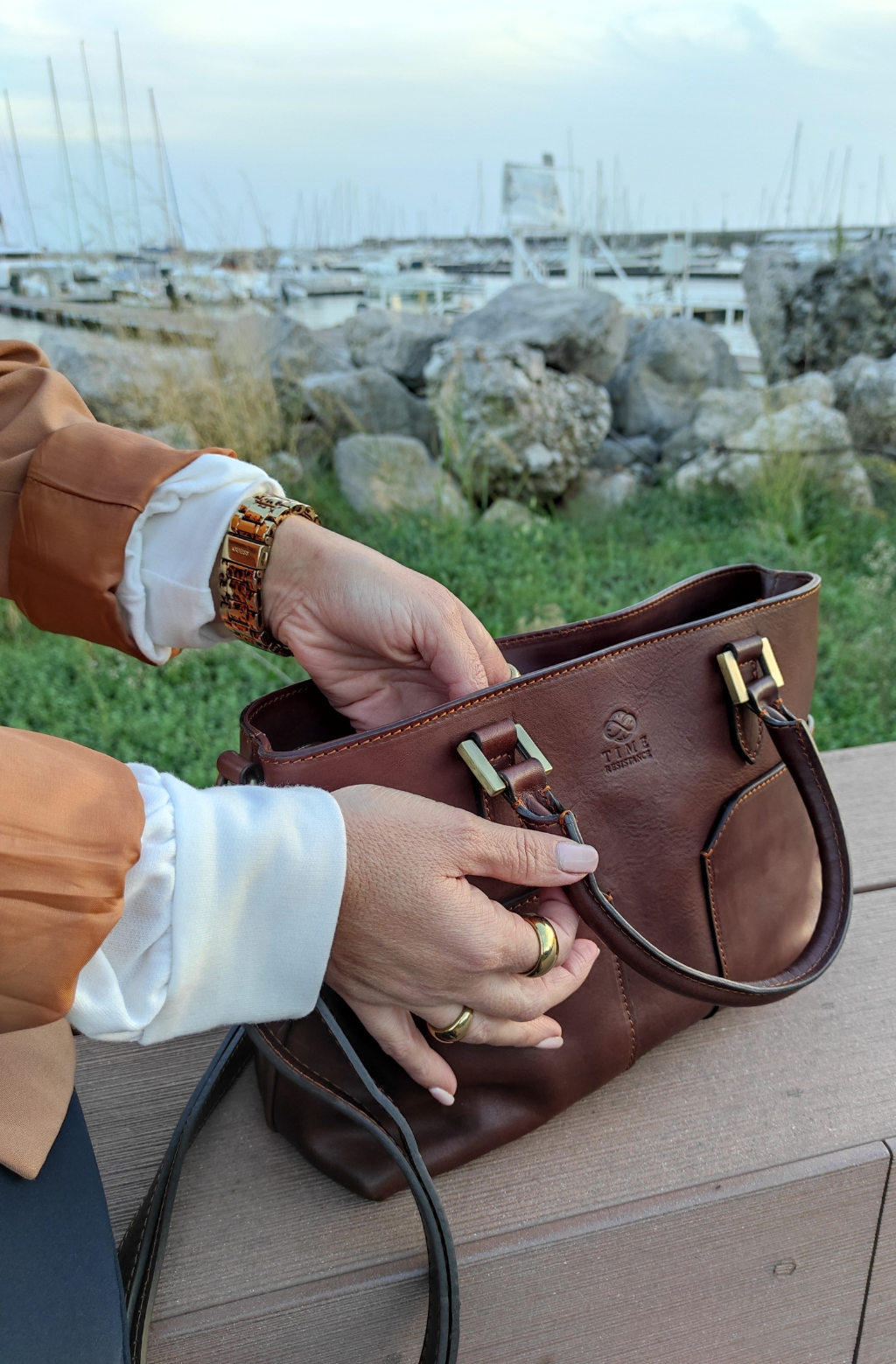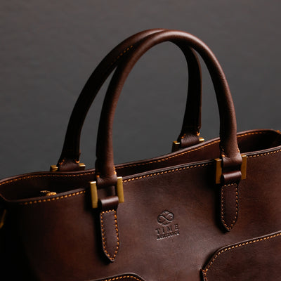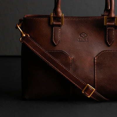 Time Resistance werkt met Italiaans Vachetta-volnerfleer: plantaardig gelooid en met de hand geverfd. Het ontwikkelt een rijke, elegante patina.