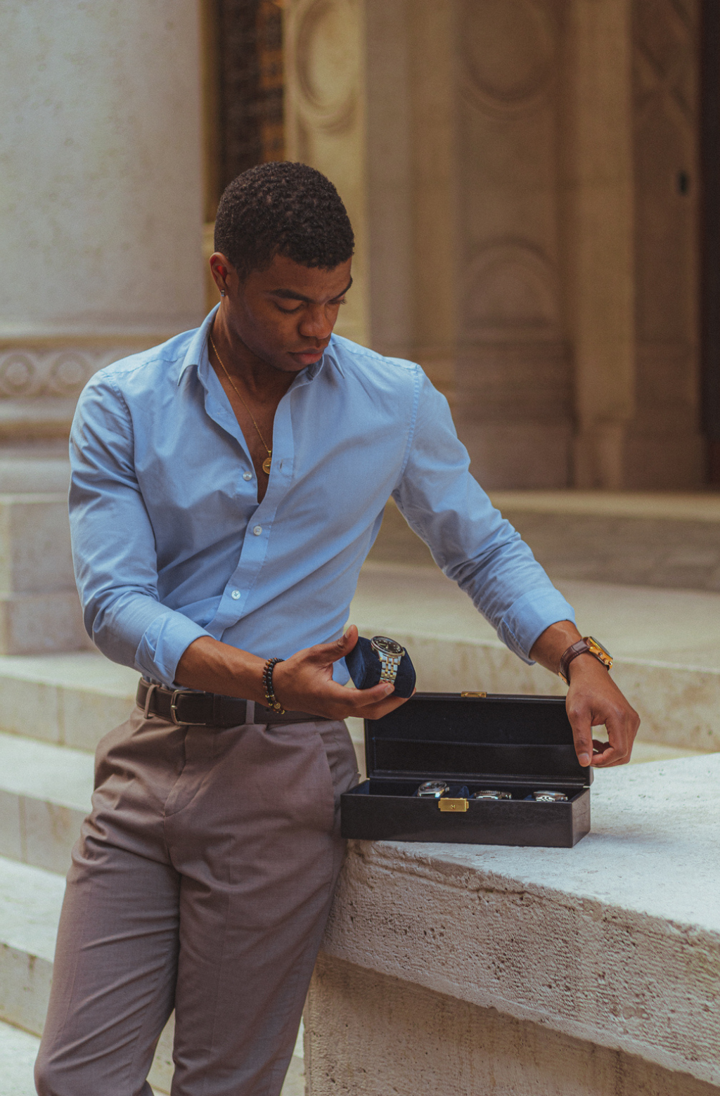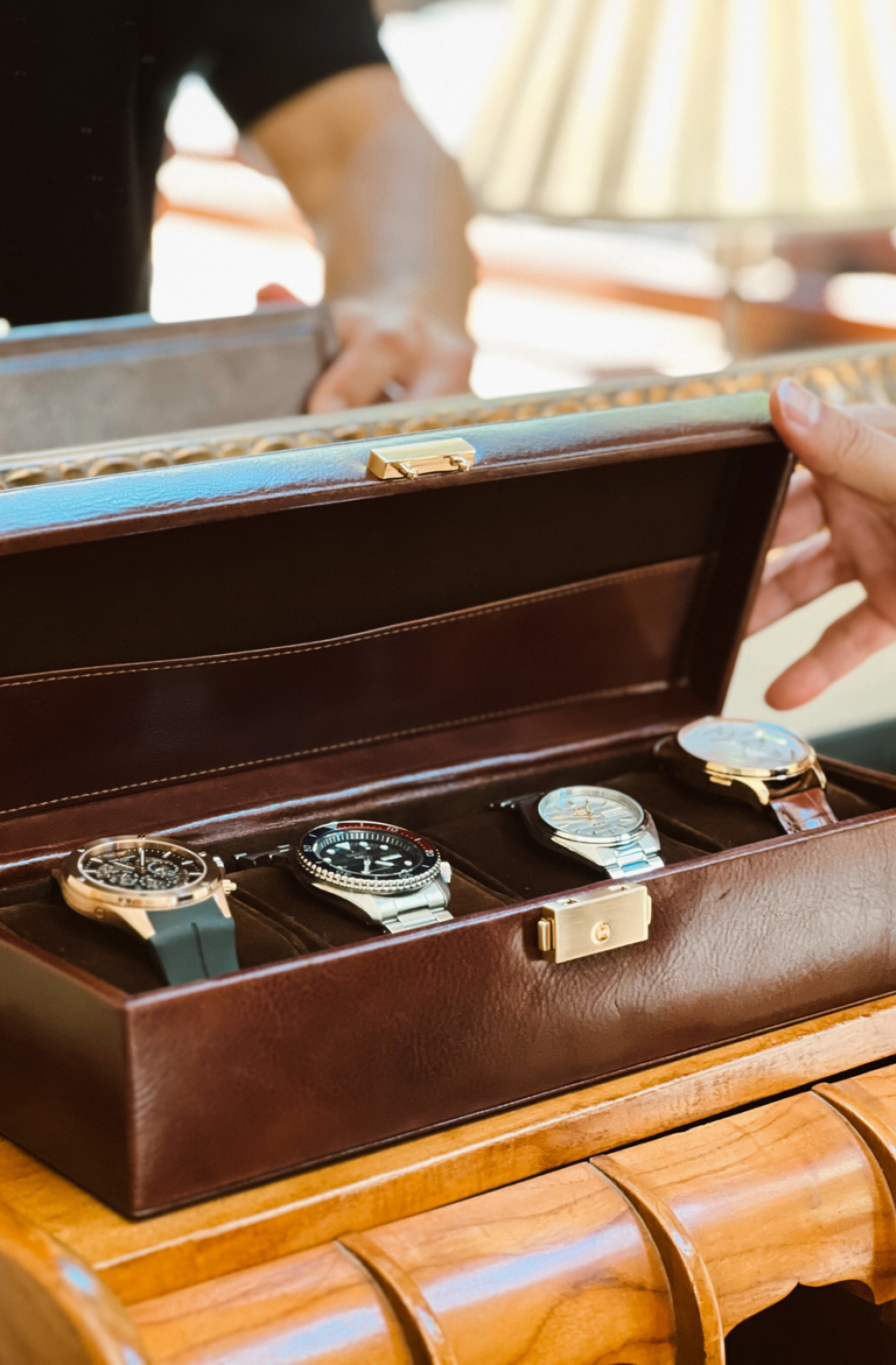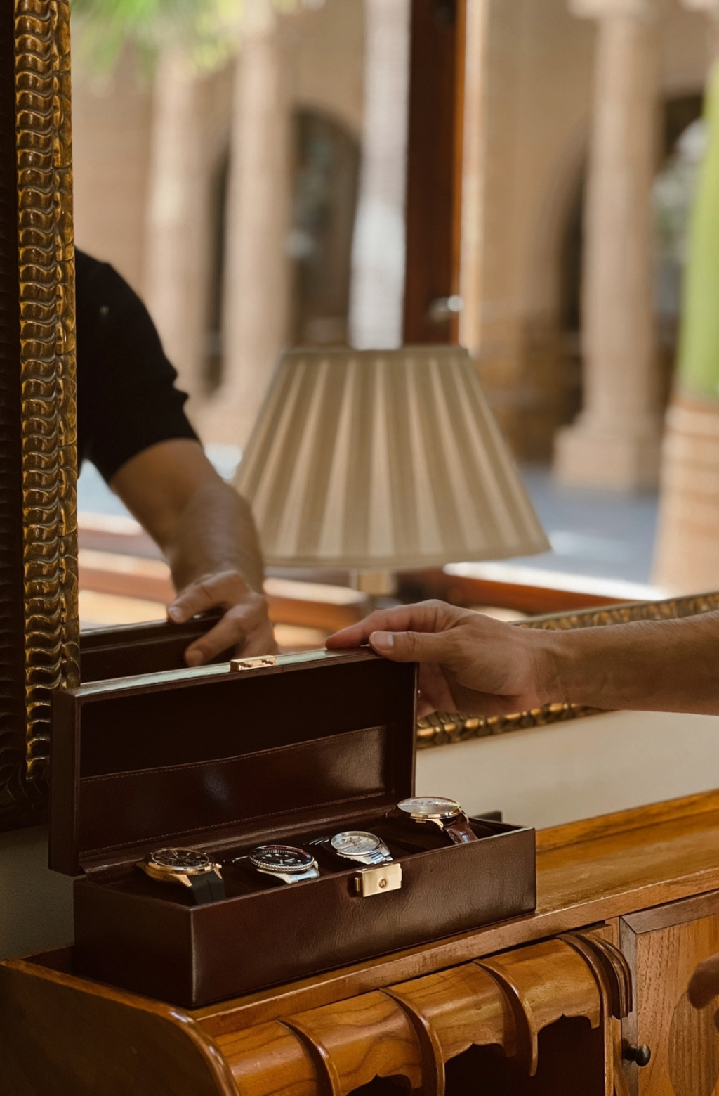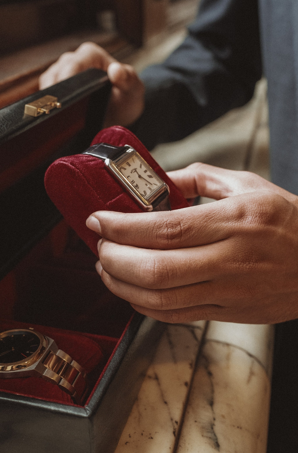 Time Resistance werkt met Italiaans Vachetta-volnerfleer: plantaardig gelooid en met de hand geverfd. Het ontwikkelt een rijke, elegante patina.