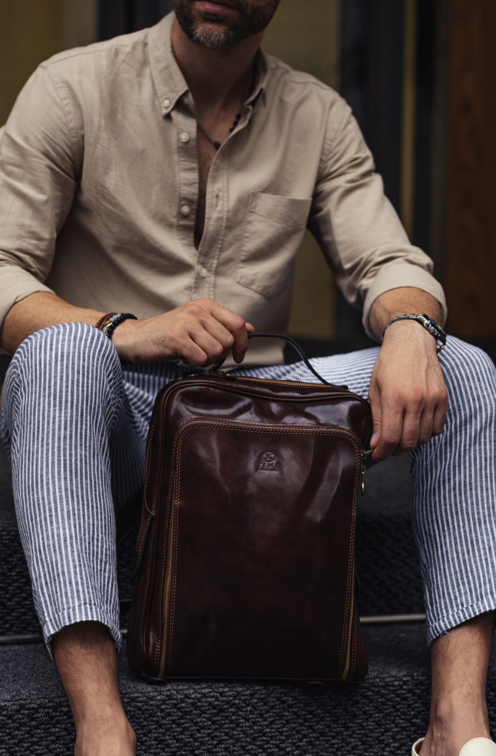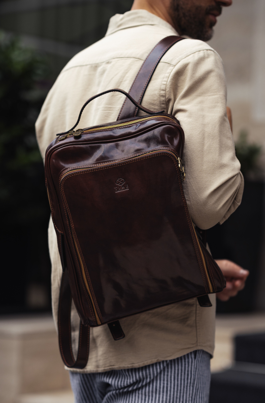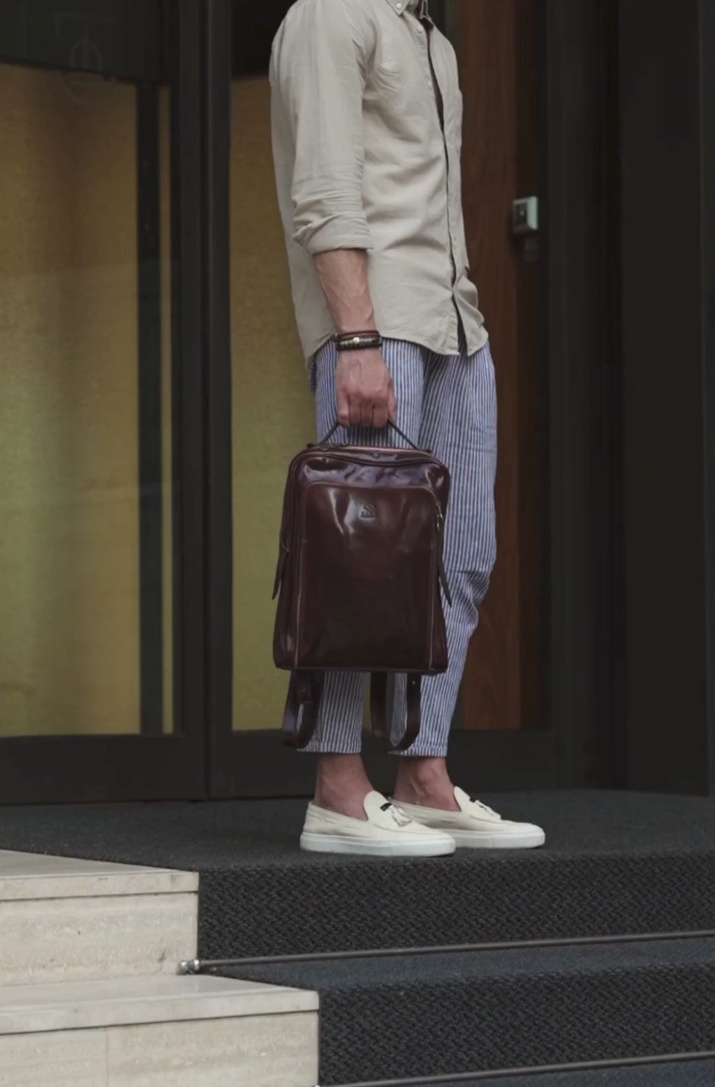 Een rugtas van volnerfleer die doet denken aan het futurisme uit de jaren '70. Vintage details versmelten met strakke, minimalistische vormen. Voor een fantast, een denker, een eeuwige avonturier. Voor diegenen die in stilte willen opvallen.