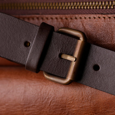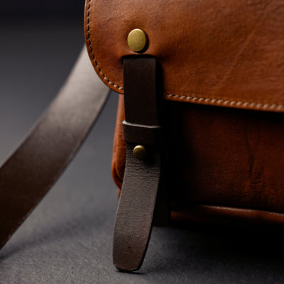 Time Resistance werkt met Italiaans Vachetta-volnerfleer: plantaardig gelooid en met de hand geverfd. Het ontwikkelt een rijke, elegante patina.