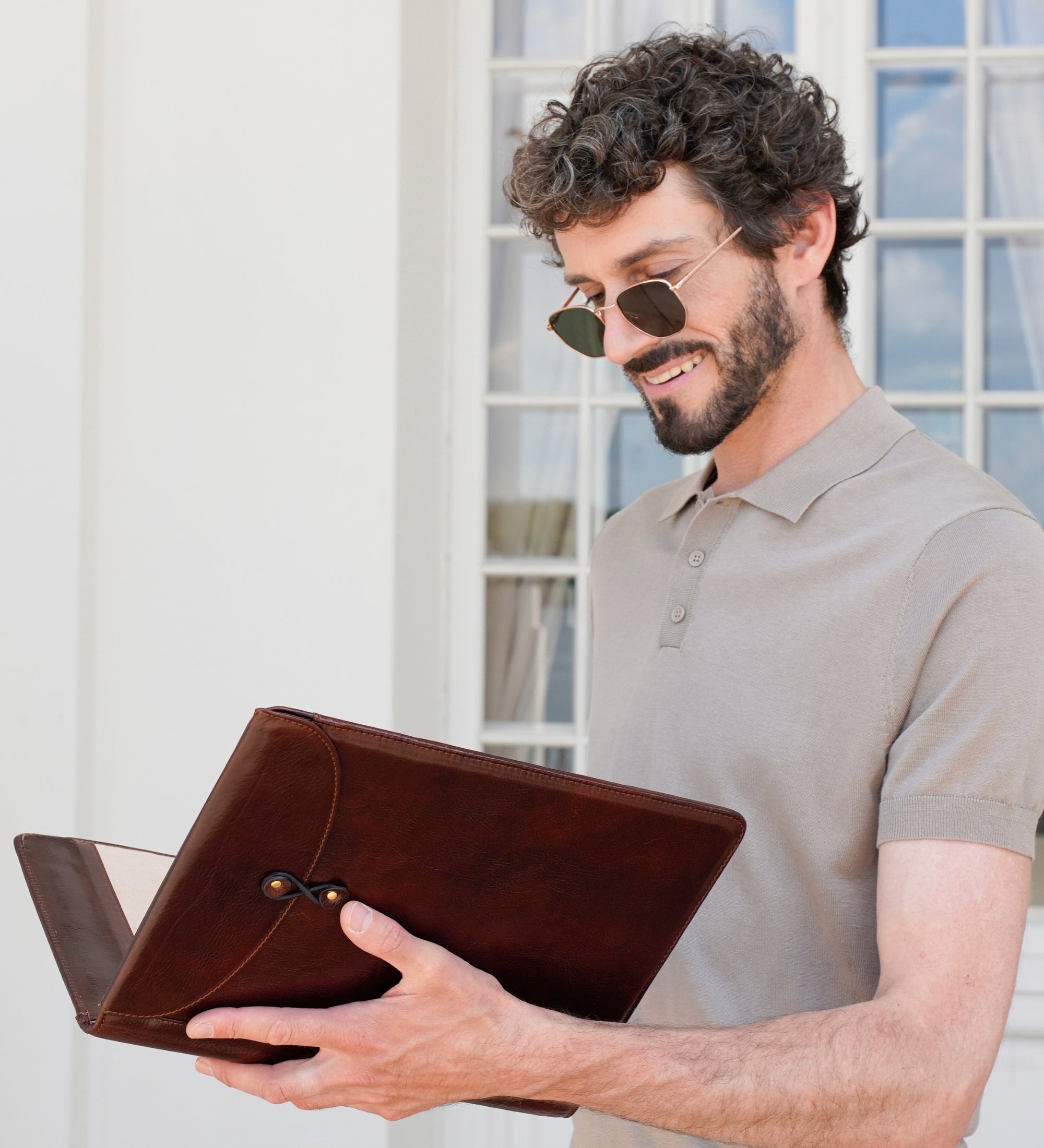 Maak kennis met de leren schrijfmap “The Loved One”—een symbool van professionele ambitie en moderne elegantie. Dit stijlvolle accessoire is met precisie en finesse gemaakt en belichaamt meer dan alleen functionaliteit: het belichaamt een mentaliteit van succes en verfijning. Terwijl hij uw hand siert, ervaart u een zwijgende zelfverzekerdheid, wetende dat de map de middelen herbergt die een diepgaande indruk gaan maken. Met het moderne design en de verfijnde details straalt hij zelfvertrouwen uit en bent u klaar voor de uitdagingen die voor u liggen. Ontworpen voor zowel een tablet als een notitieblok en voorzien van meerdere vakjes voor kaartjes en pennen, combineert hij gemak en verfijning. Til uw professionele imago naar een hoger niveau met onze leren schrijfmap—een statement van evenwicht, verfijning en het streven naar grootsheid.