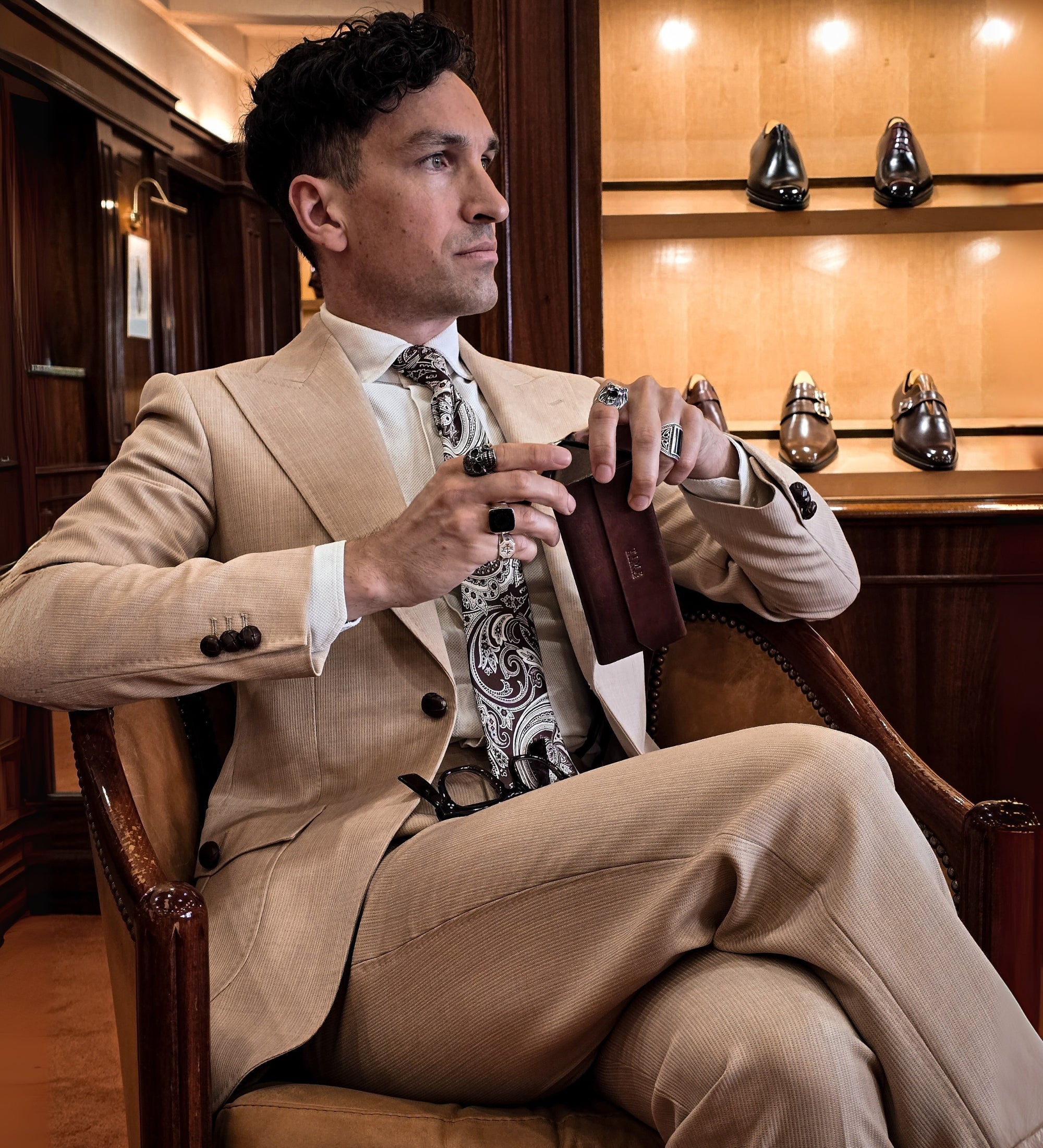 Sommige exemplaren spreken zachtjes, maar hebben toch een bepaald gewicht. The Riddle of the Sands is zo'n exemplaar, gemaakt van volnerf Italiaans leer en vormgegeven door het soort bedachtzaamheid waardoor functionaliteit aanvoelt als poëzie. Een stevig schild voor uw bril wanneer u hem nodig hebt en flinterdun opvouwbaar wanneer u hem niet nodig hebt. De magneetsluiting sluit op een zachte, gracieuze manier, niet lomp. Ingetogen, intelligent en onmiskenbaar verfijnd. Het is een alledaags, maar verheven object.
